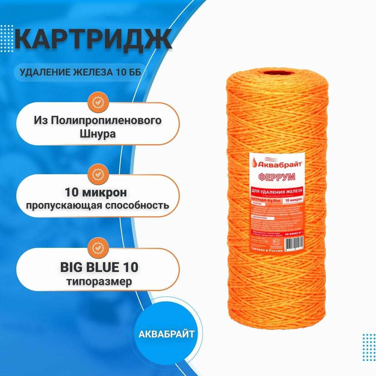 Картридж для воды аквабрайт Феррум-10ББ для очистки от железа интересное: