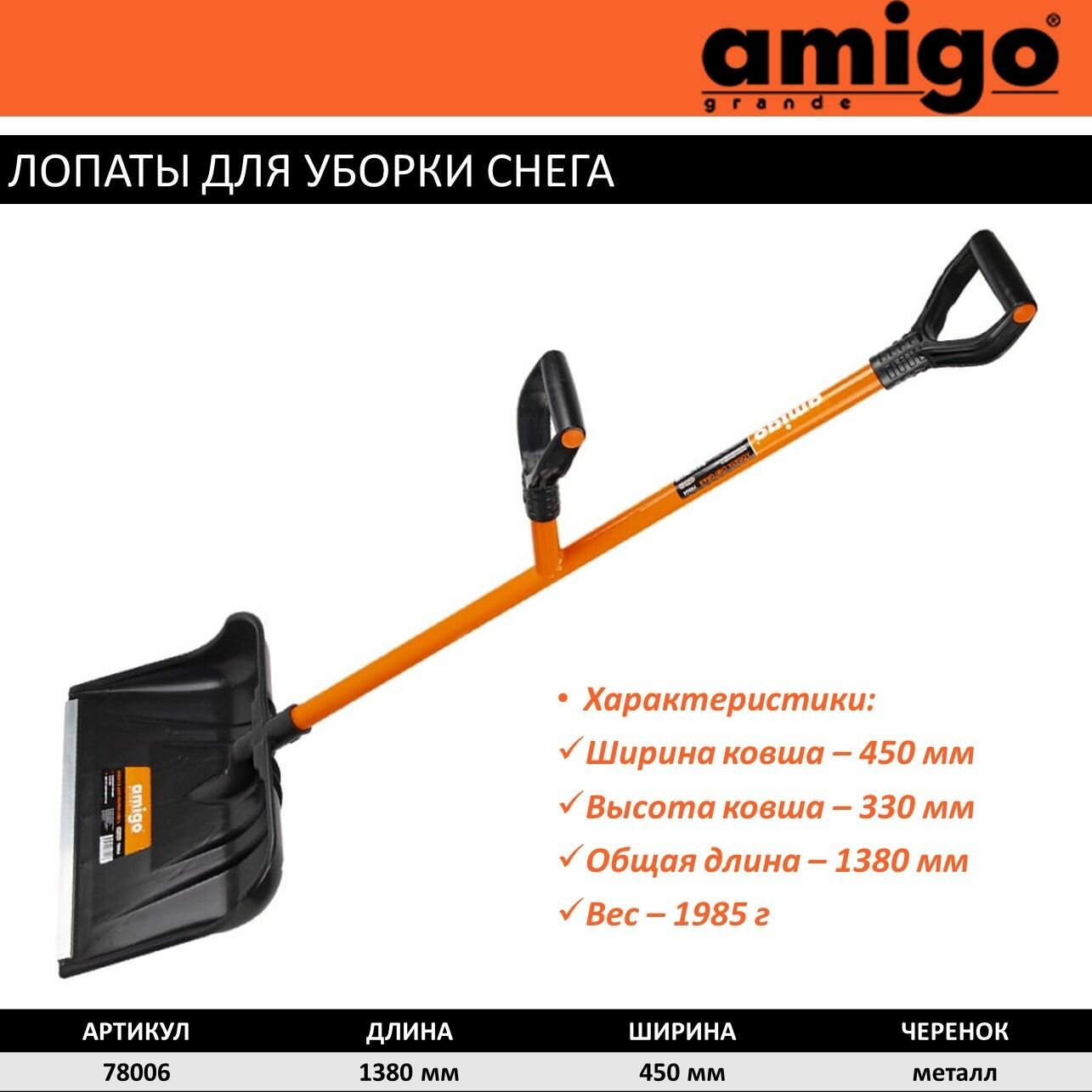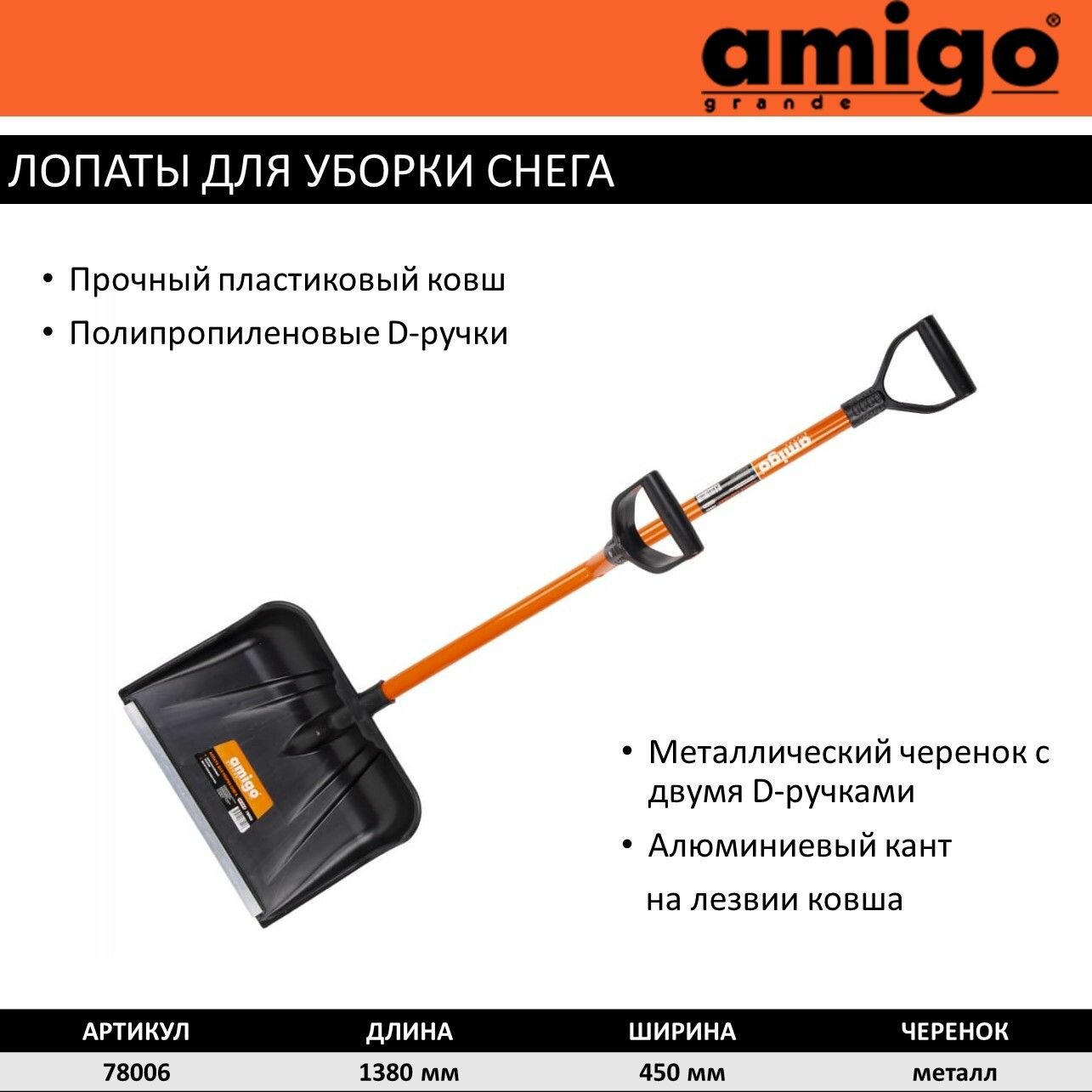 Лопата для уборки снега 450х330мм AMIGO, 78006, с двумя ручками