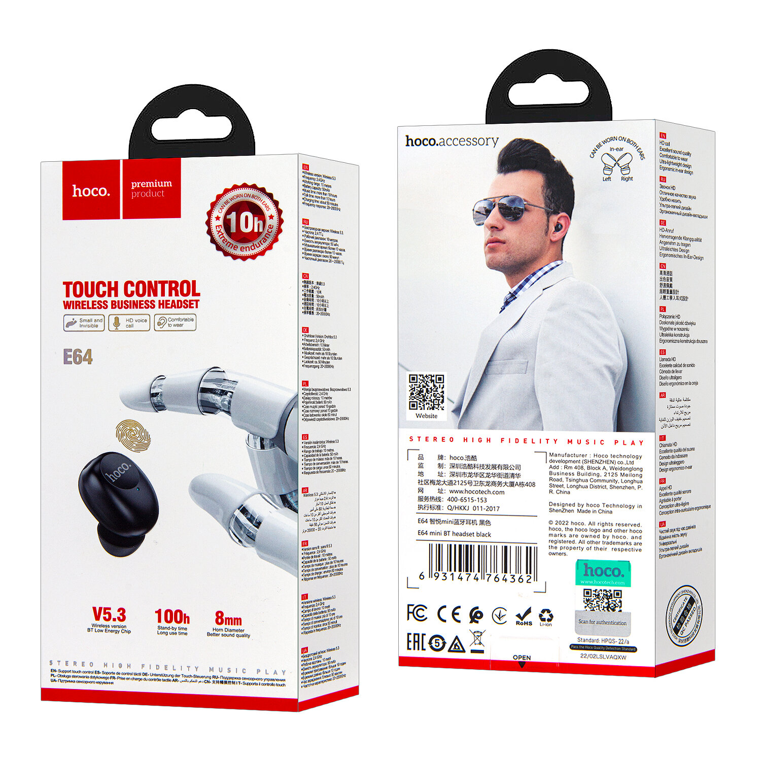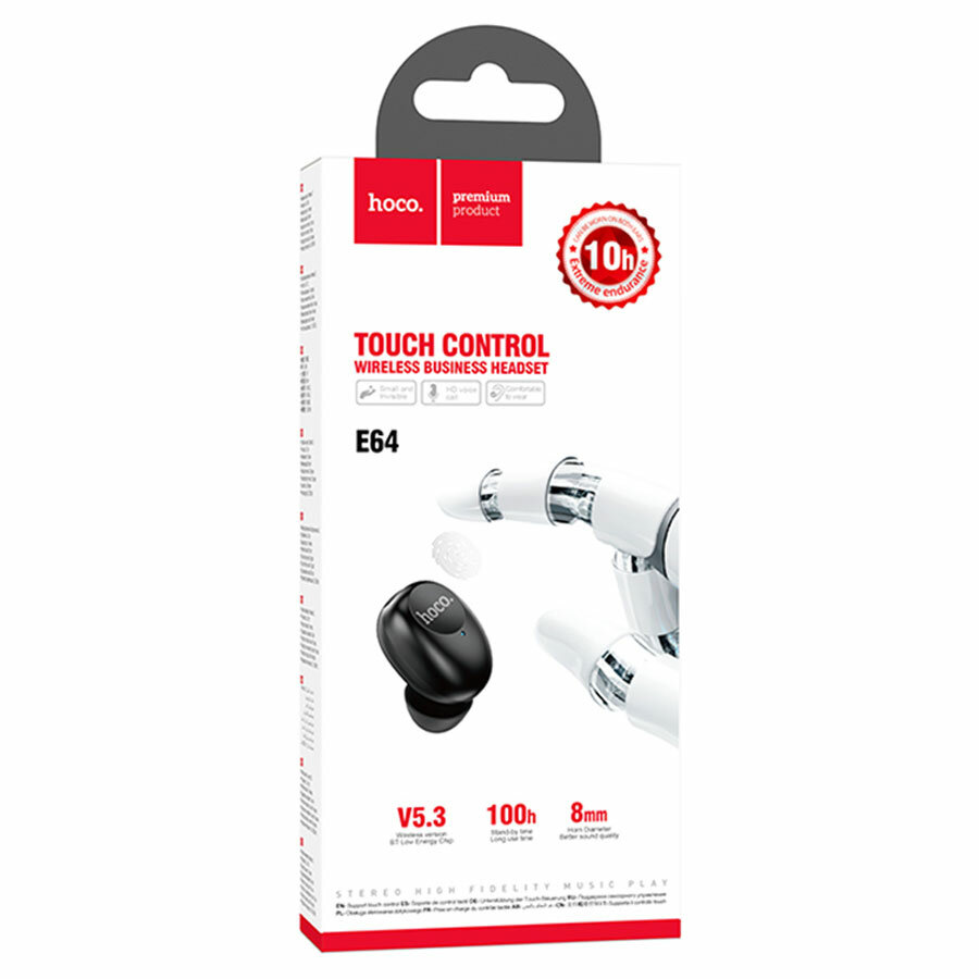 BT гарнитура Hoco, E64 (универсальная для всех телефонов), черный