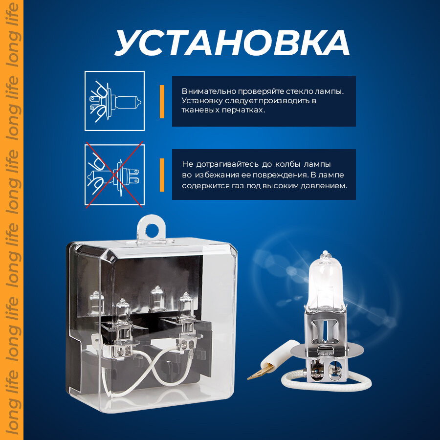Автолампа H3 12v55w (PK22s) Pro Long Life (2шт. блистер), KRAFT KT700212 (1 шт.)