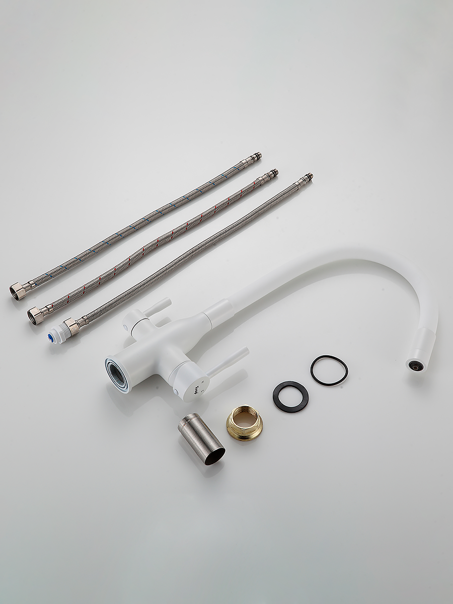 Смеситель для кухни под фильтр с гибким, поворотным изливом Frap F4396-8 белый