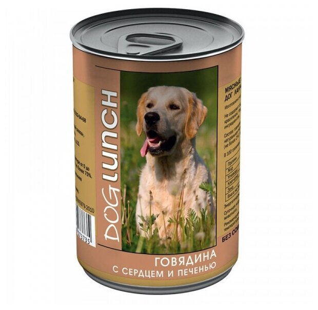 Дог Ланч консервы для собак Говядина, сердце и печень, 410 г. упаковка 12 шт