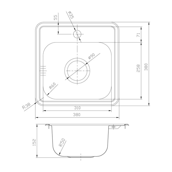 Мойка IDDIS STRIT S (380х380) нержавеющая сталь 0,8мм, шелк STR38S0i77