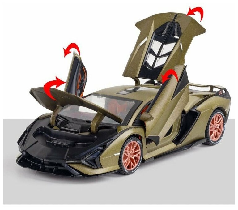 Машинка металлическая Bburago Lamborghini Sian FKP 37, открывающиеся двери, капот и багажник, вращающиеся колеса, коллекционная модель Ббураго Ламборджини Сиан 1:18, зеленая, 18-11046GN