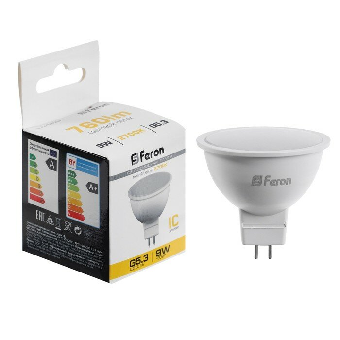 Лампа светодиодная FERON, (9W) 230V G5.3 2700K MR16, LB-560 интересное: