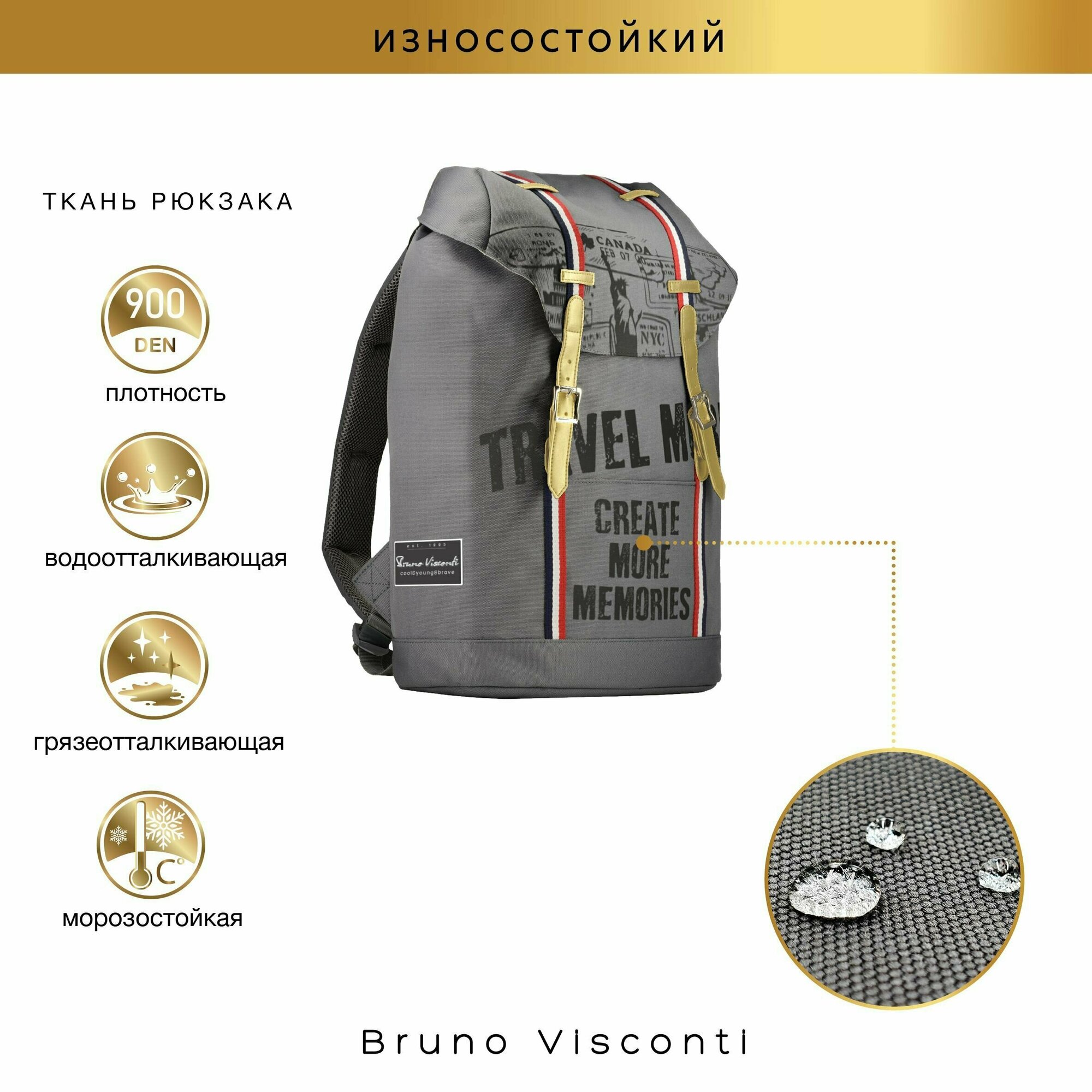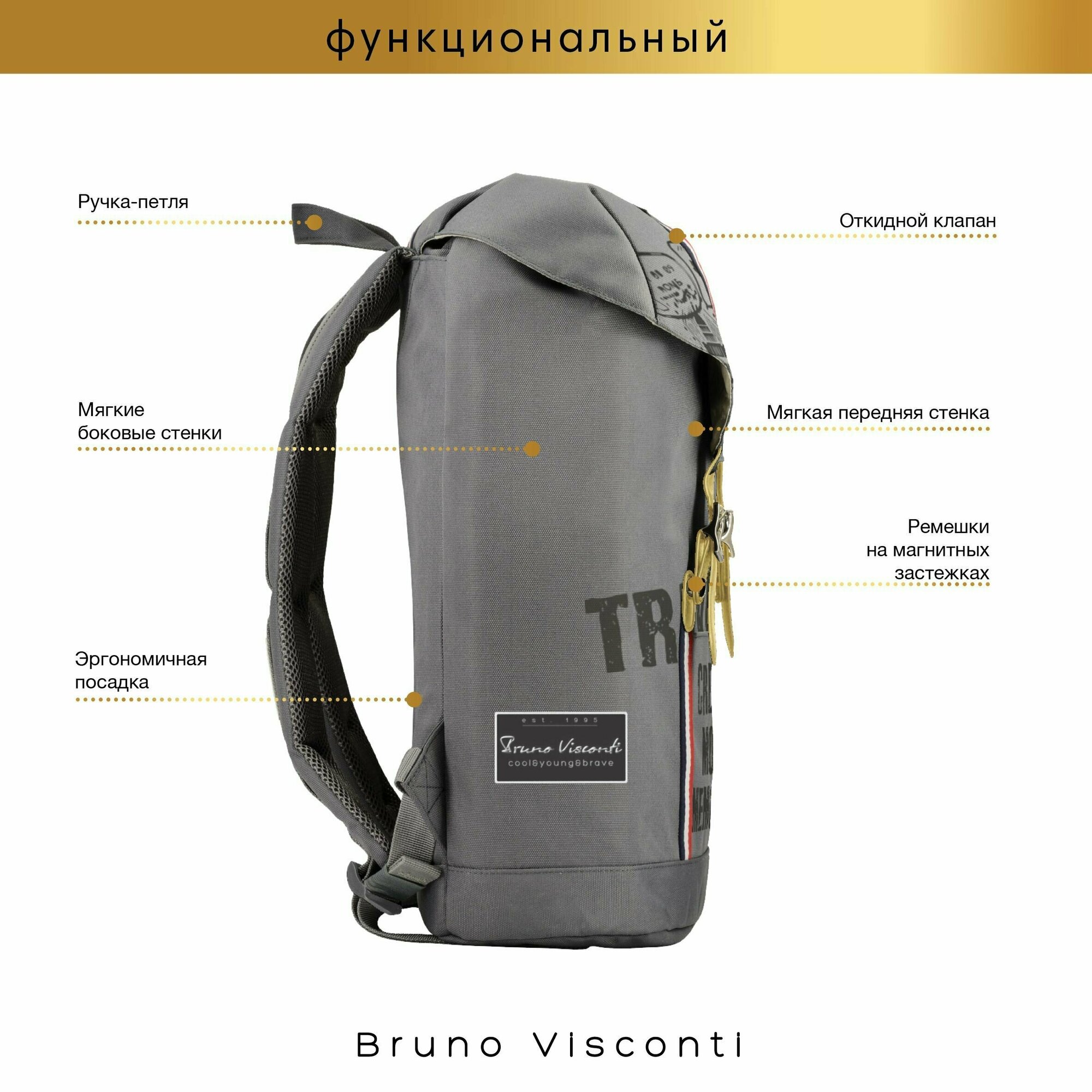Рюкзак BrunoVisconti городской серый "TRAVEL", Арт. 12-011-012/05 интересное:
