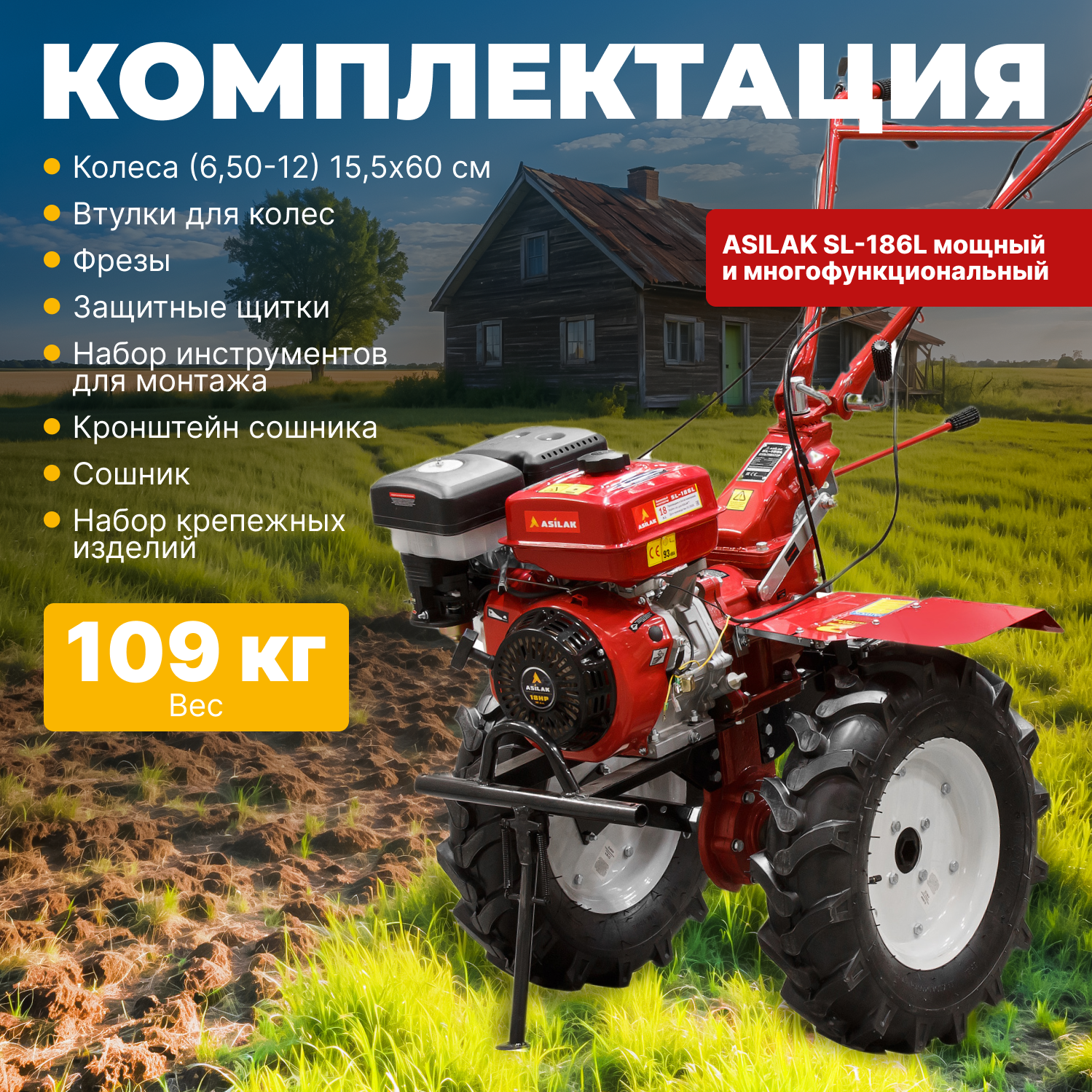 Культиватор бензиновый Asilak SL-186L, колеса 6.50-12 интересное: