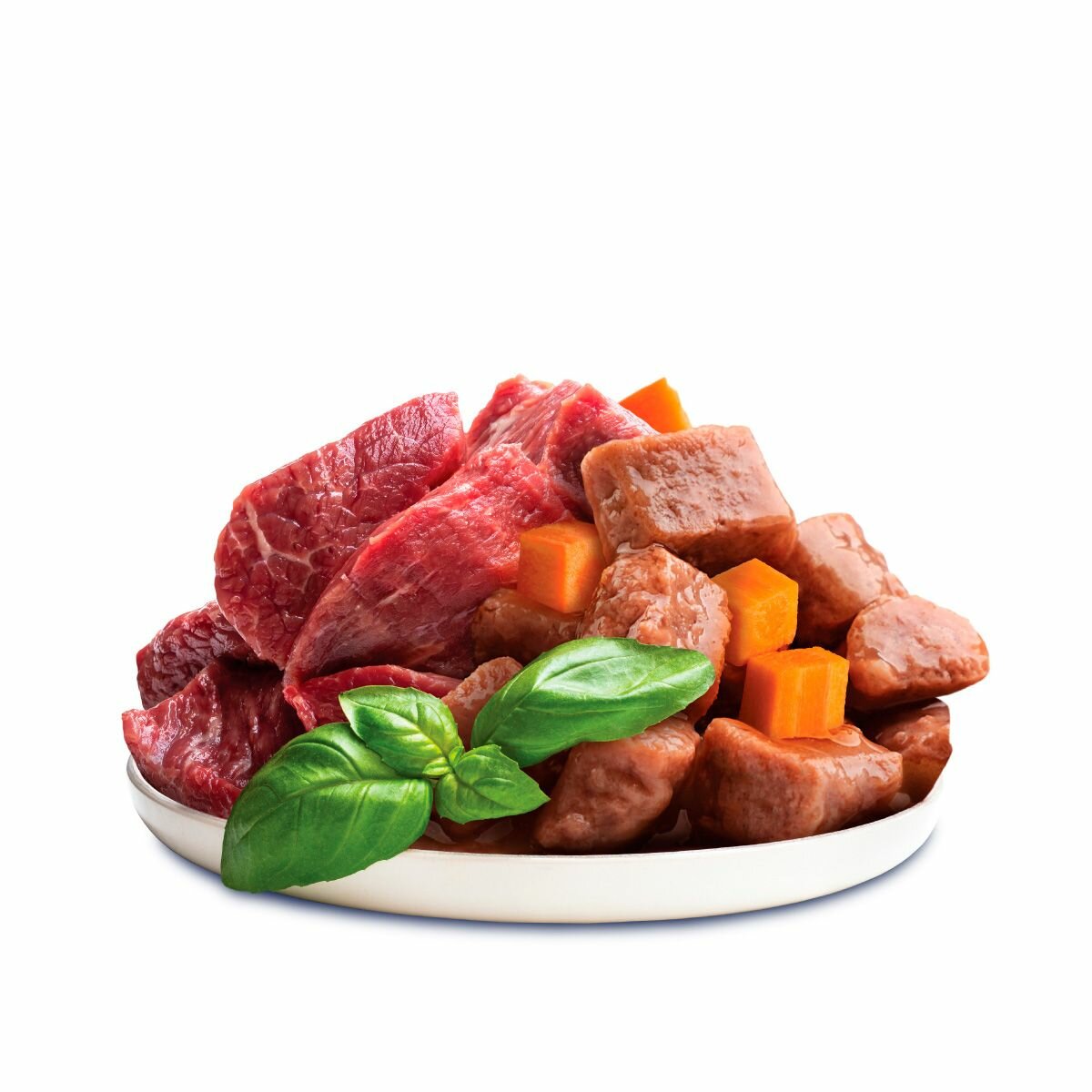 | Состав | 75% мясо и мясные субпродукты (в том числе ягненок 10%), мука рисовая, мука пшеничная, морковь, клетчатка свекловичная, рыбий жир, минерально-витаминный комплекс, загуститель |