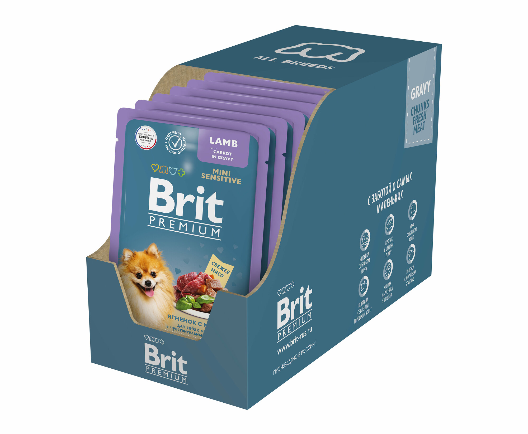 Влажный корм для собак Brit Premium для взрослых мини собак с чувствительным пищеварением, ягненок с морковью в соусе, пауч 1 уп. х 14 шт. х 85 г (для мелких пород)
