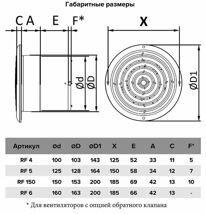 Вентилятор вытяжной RF 6 настенный диаметр 160 мм в ванну в туалет