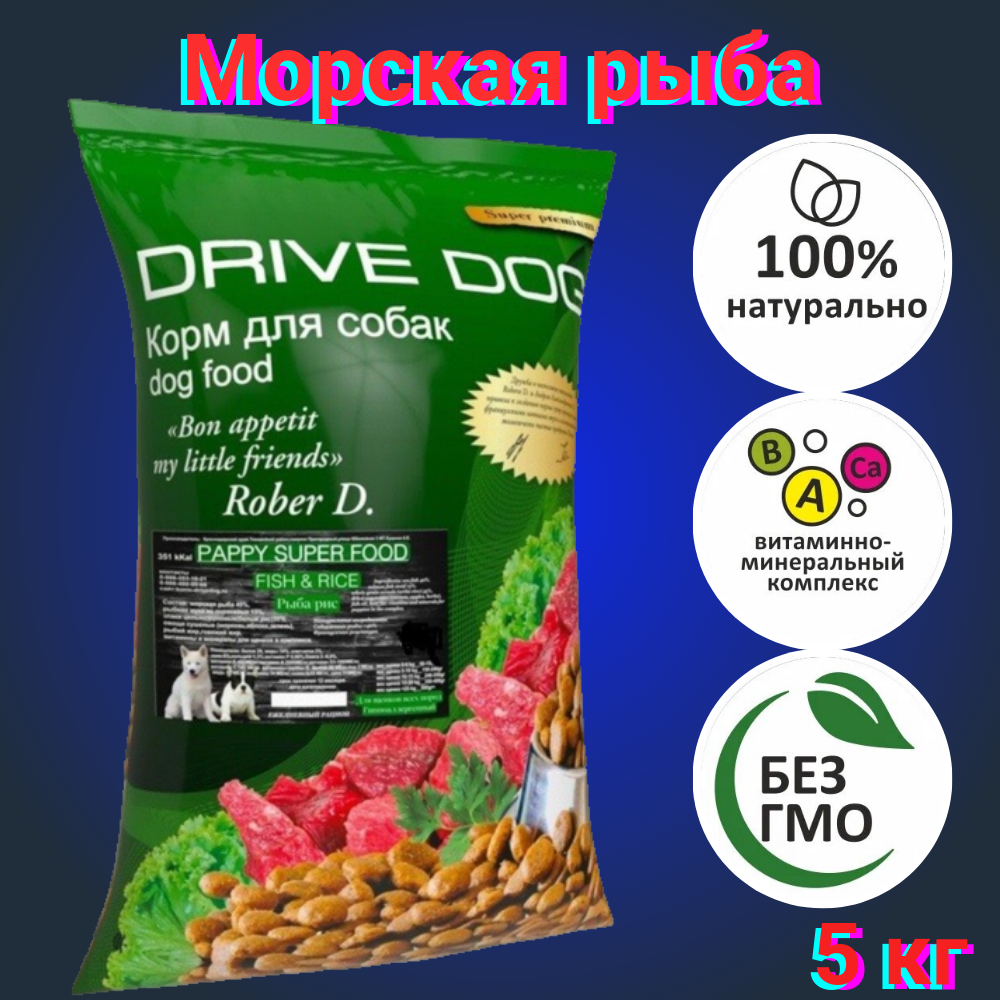 DRIVE DOG PAPPY SUPER FOOD корм для щенков средних и крупных пород гипоаллергенный рыба с рисом (5 кг)