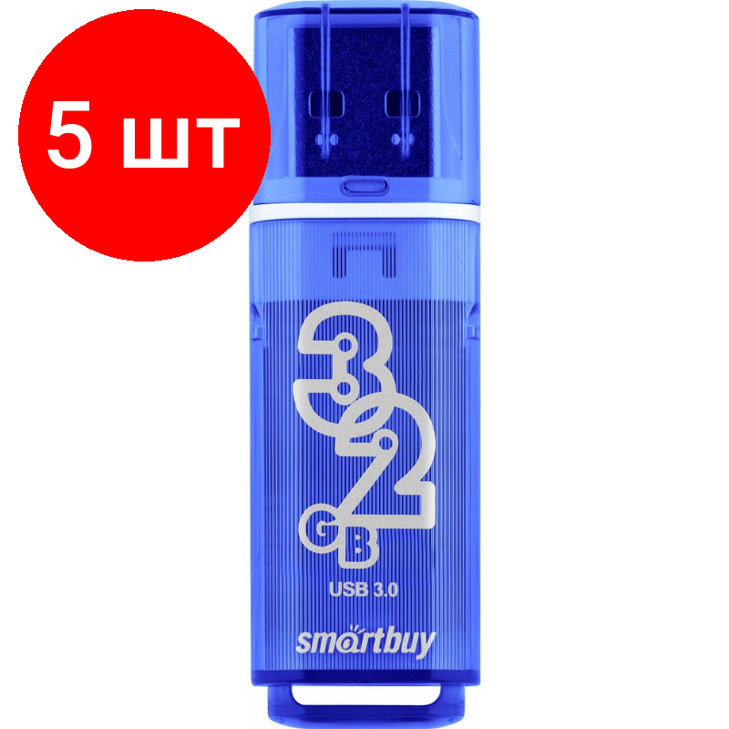 Флеш-диск 32 GB SMARTBUY Glossy USB 3.0, комплект 5 шт., тёмно-синий, SB32GBGS-DB