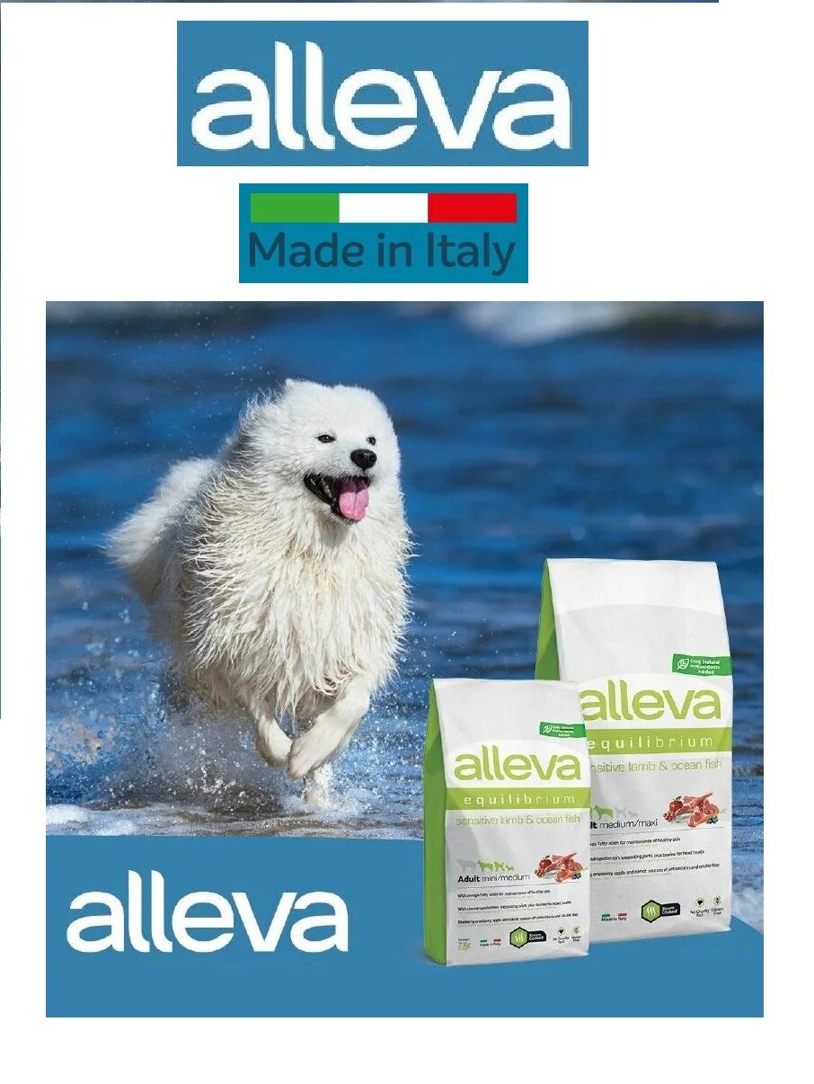 ALLEVA Полнорационный кормя для взрослых собак средних и крупных пород. SENSITIVE ягенок и океаническая рыба. 12 кг.