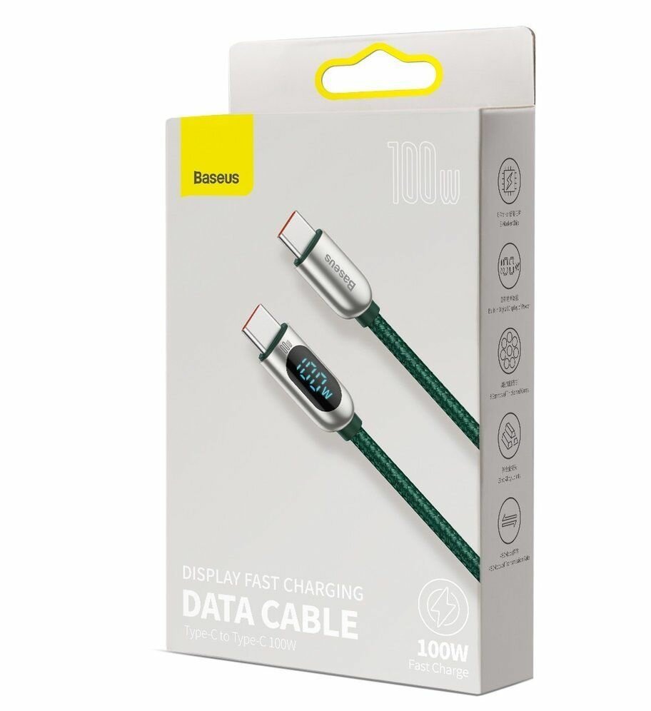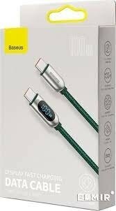Кабель для быстрой зарядки и передачи данных BASEUS Display Fast Charging, Type-C - Type-C, 100W, 5A, 1 м, Зеленый