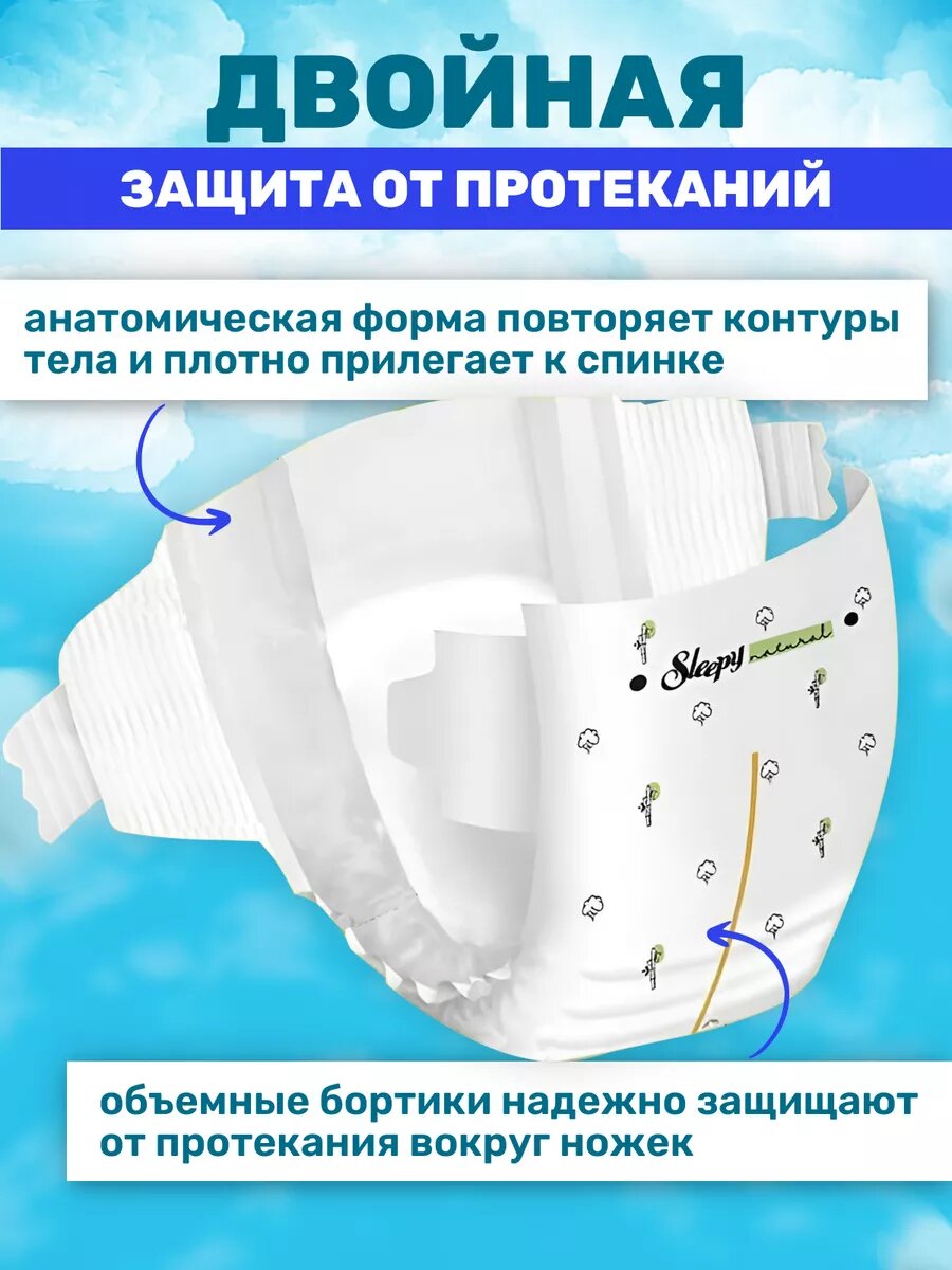 ЭКО Подгузники 4 размер, натуральное волокно, детские Sleepy Natural (9-16 кг), 52 шт