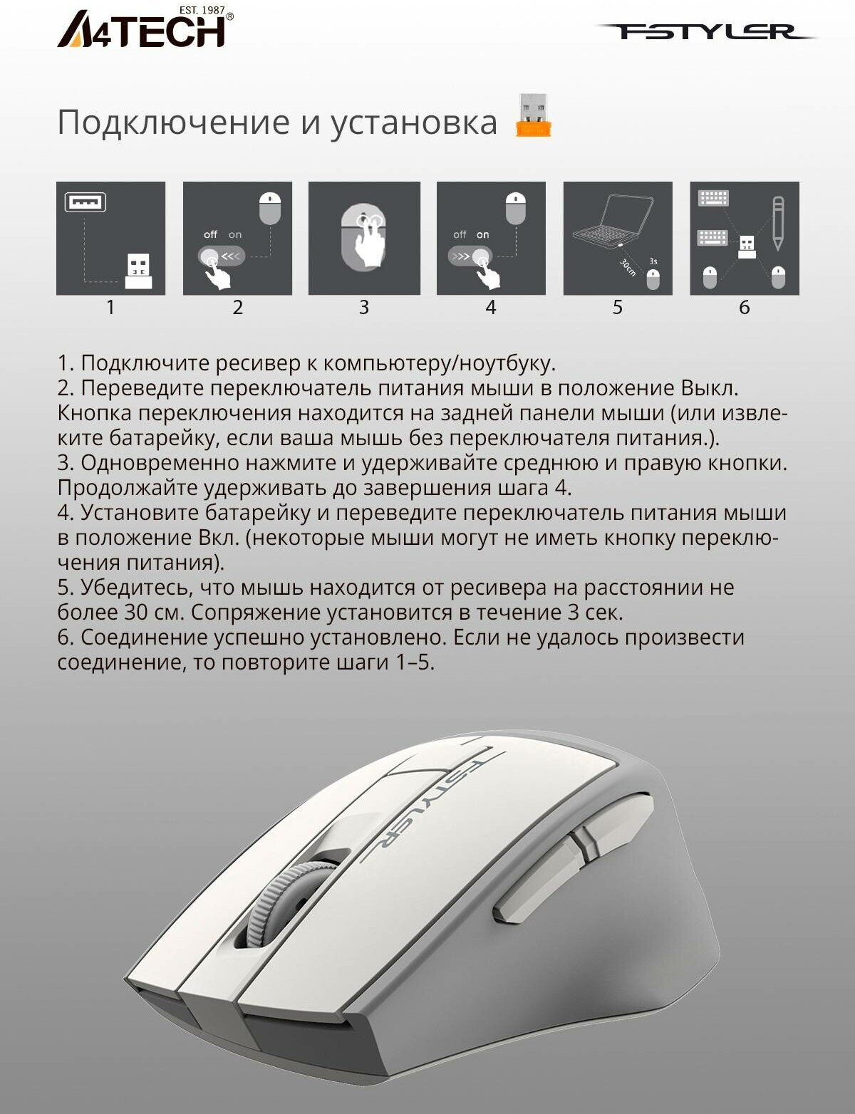 Мышь компьютерная A4Tech Fstyler (FG30S WHITE)бел/сер/2000dpi/беспровод/6кн, 1729876