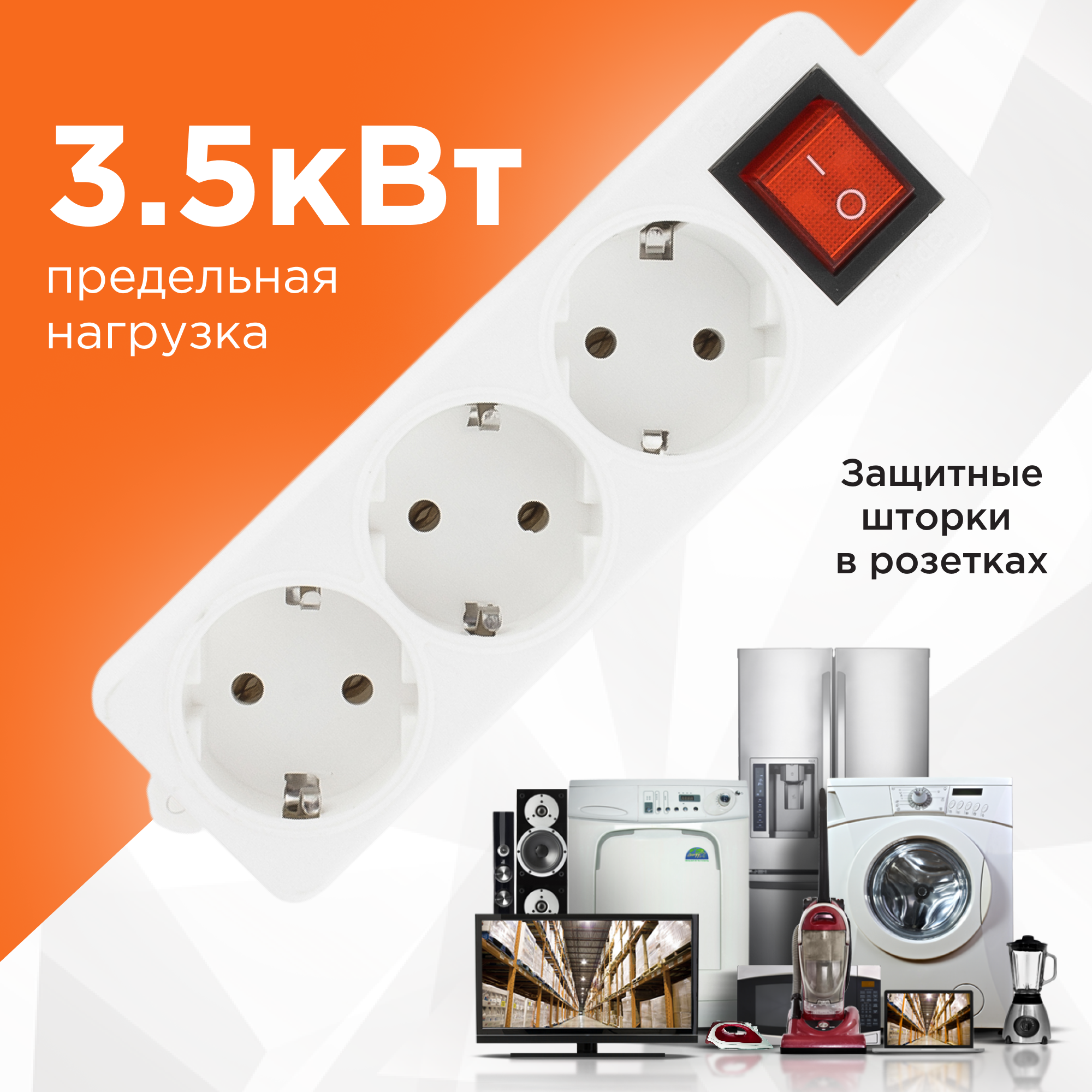 | Плюсы: | Розетки с заземлением, длинный шнур |