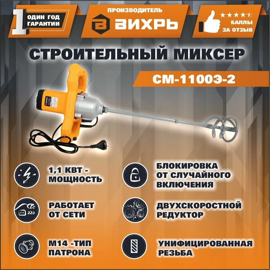 Строительный миксер 1,1 кВт Вихрь СМ-1100Э-2 72/20/2 интересное: