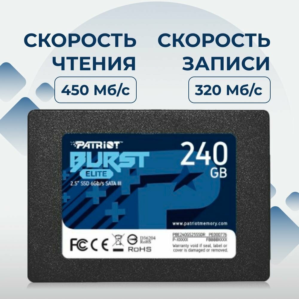 Твердотельный накопитель Patriot Memory Burst Elite 240 ГБ SATA PBE240GS25SSDR