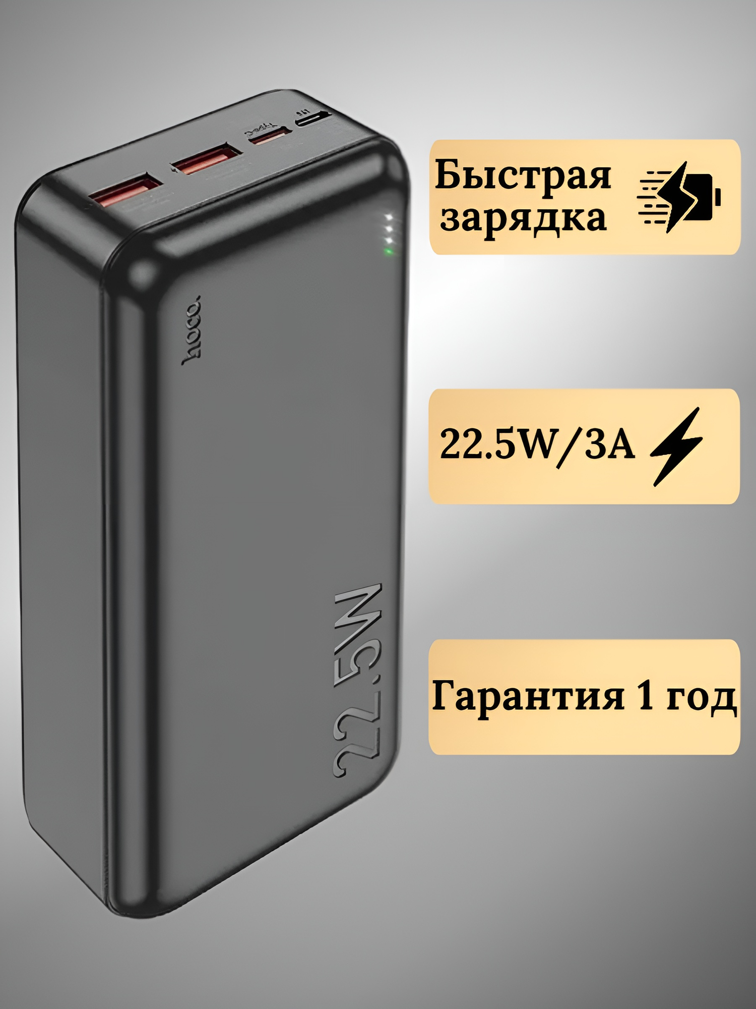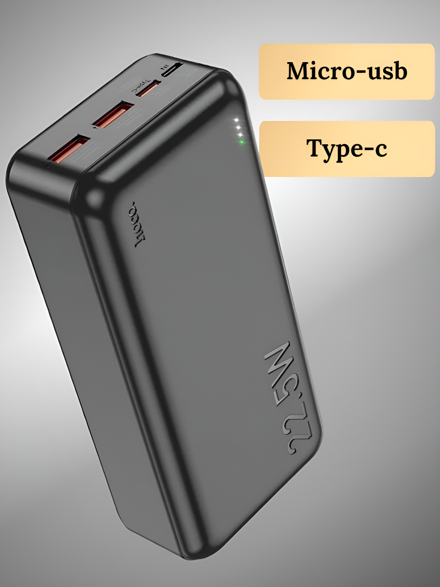 Повербанк / внешний аккумулятор Hoco J101A 20000mAh 22.5W 2 USB, Type-C, Micro-USB с LED-индикатором, цвет Черный