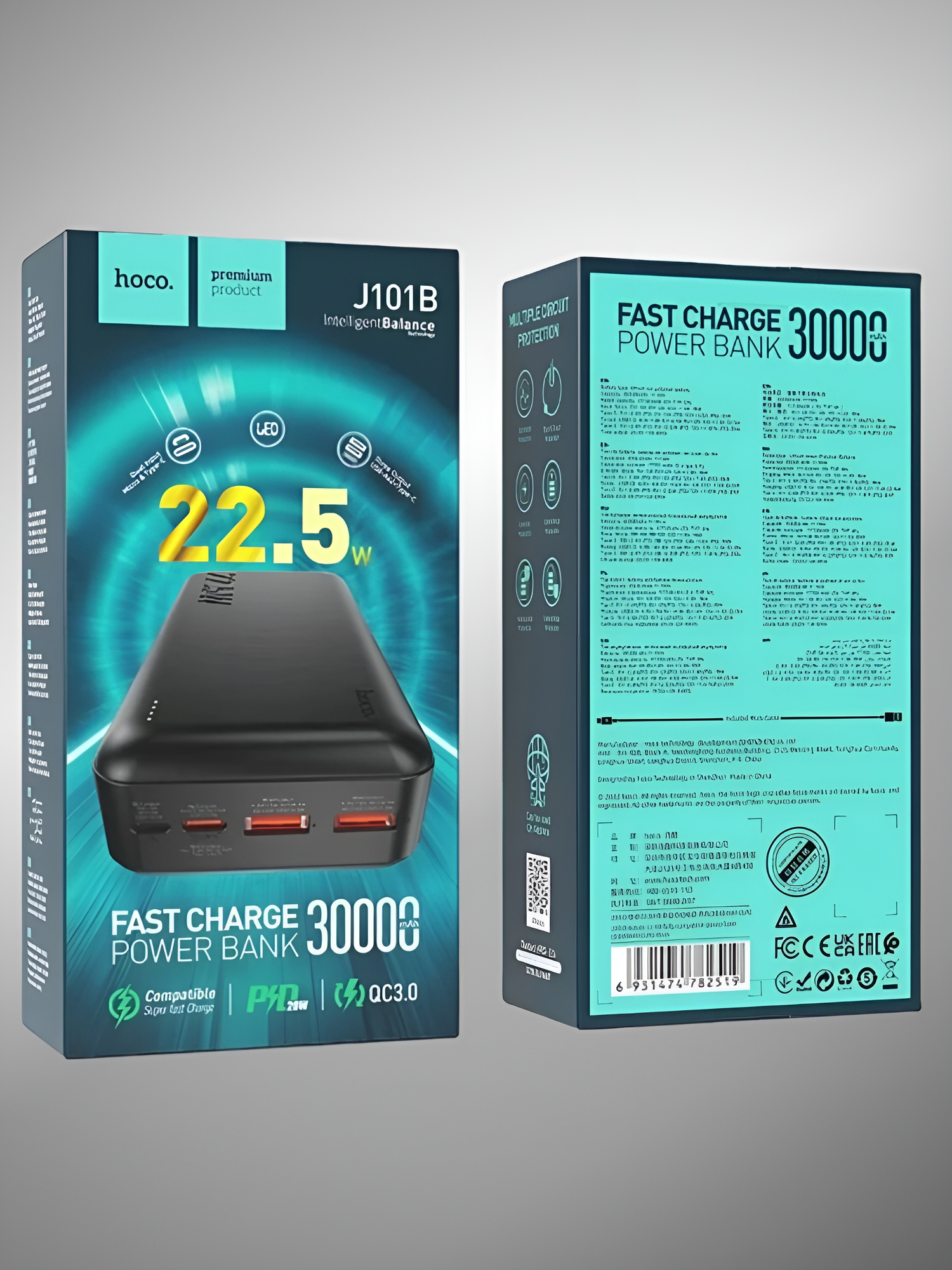 Портативный аккумулятор Hoco J101B Astute, 30000mAh, 22.5W, черный
