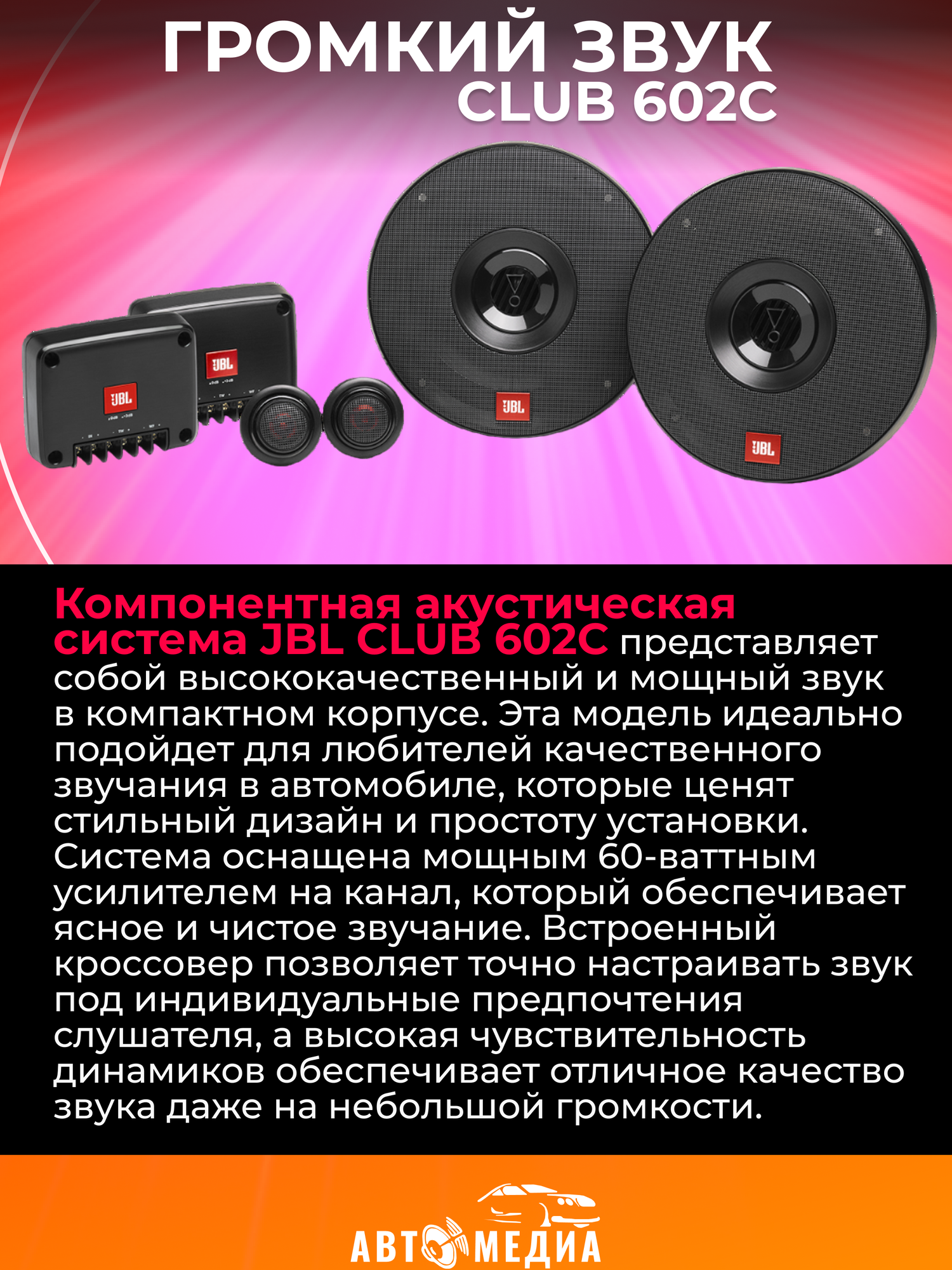 Автомобильная двухполосная компонентная акустика JBL CLUB 602C