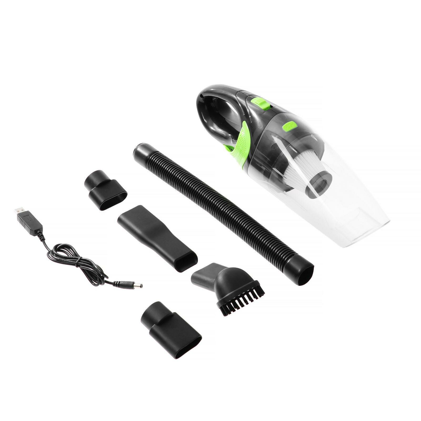 Пылесос автомобильный беспроводной, 5 насадок, 130 Вт, 12 В, черно-зеленый