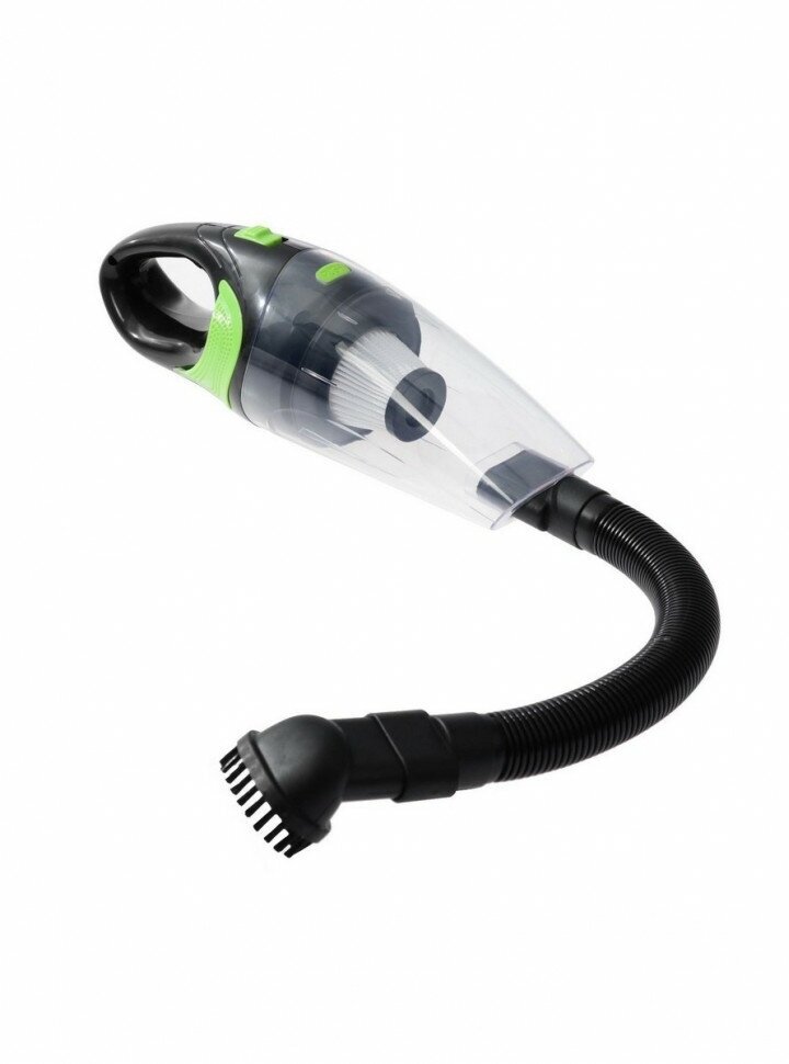 Пылесос автомобильный беспроводной, 3 насадки, 130 Вт, 12 В, черно-зеленый