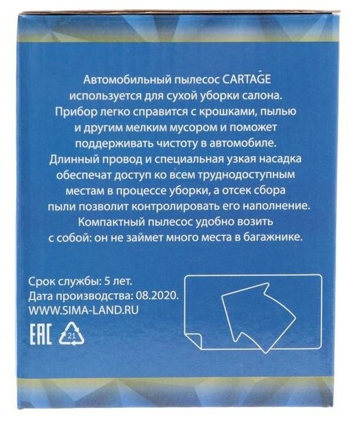 Пылесос автомобильный CARTAGE, беспроводной, 3 насадки, 130 Вт, 12 В, черно-зеленый Cartage 5377457 .