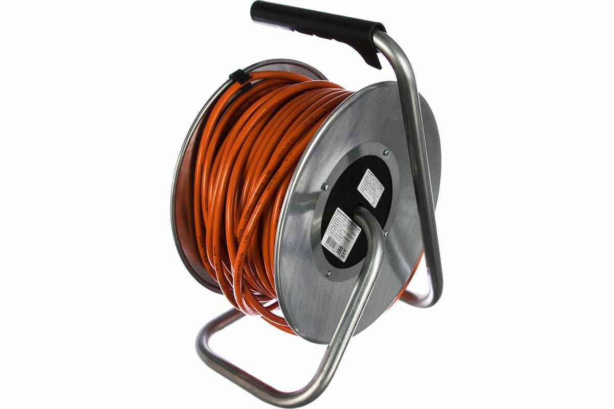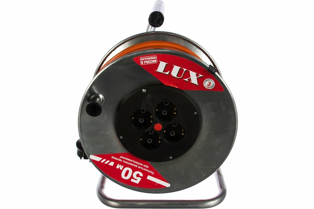 Удлинитель силовой LUX К4-Е-50, розеток 4шт, 3x1.5 кв.мм, 16A, 50м, ПВС, катушка металлическая [40150]