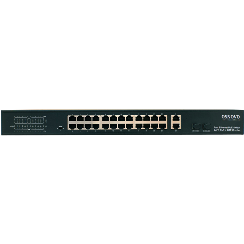 Коммутатор Osnovo SW-62422(400W) 26x100Мбит/с 2xКомбо(1000BASE-T/SFP) 24PoE+ 400W неуправляемый