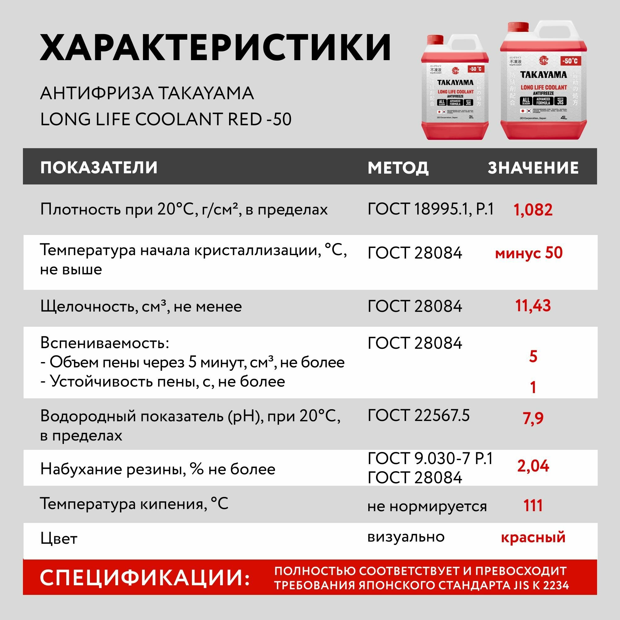 Антифриз Готовый 4Л Takayama Long Life Coolant Red (-50) TAKAYAMA арт. 700508