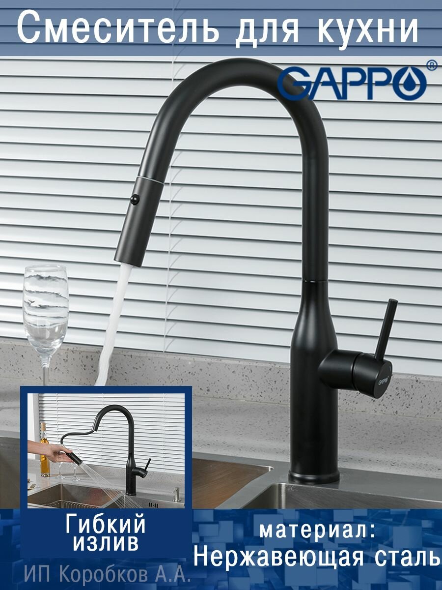 Купить Смеситель для кухни 35к G4398-46 GAPPO нерж. сталь, высокий выдвижной излив, черный