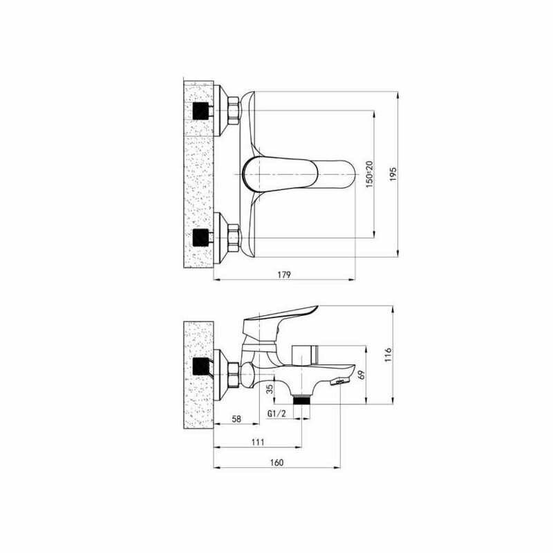 Смеситель для ванны и душа 21323 с монолитным изливом OSGARD BRUT однорычажный