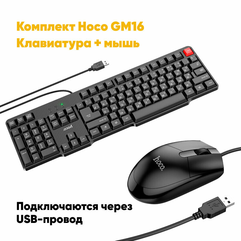 Комплект игровая мышь + клавиатура проводная hoco GM16 черный , Российская клавиатура