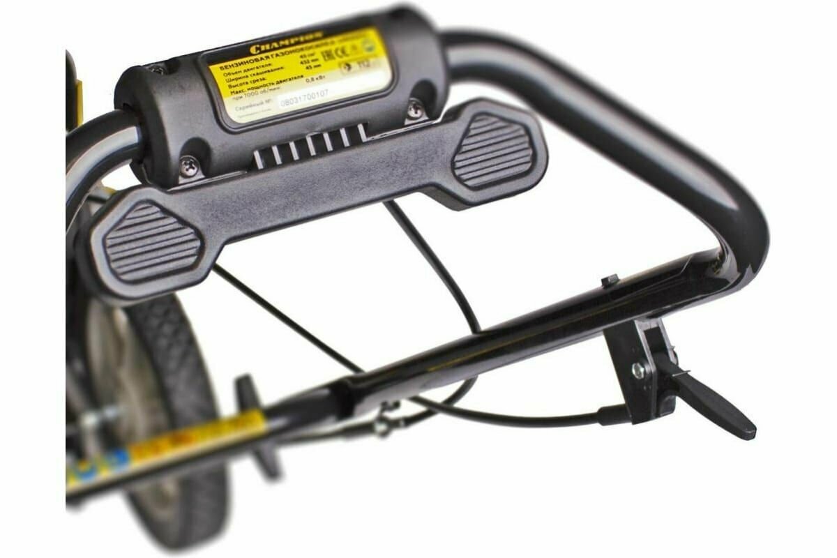 | Конструктивные особенности | регулировка ручки по высоте / Боковой выброс травы / Колеса / Мульчирование собранной травы |