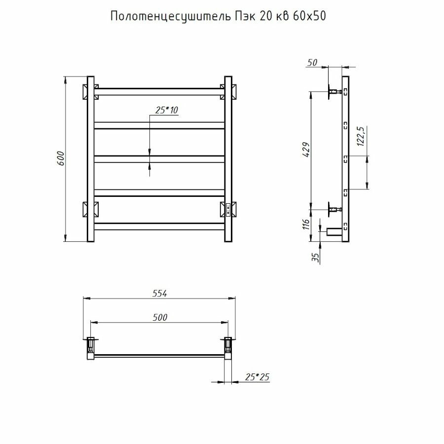 Полотенцесушитель Тругор Пэк 20 кв 60х50 универсальный электрический