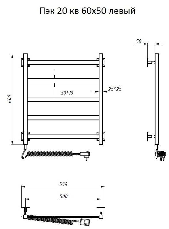 Полотенцесушитель электрический Тругор 554х600мм форма лесенка 5 перекладин универсальное подключение: слева справа / скрытое или кабель с вилкой интересное: