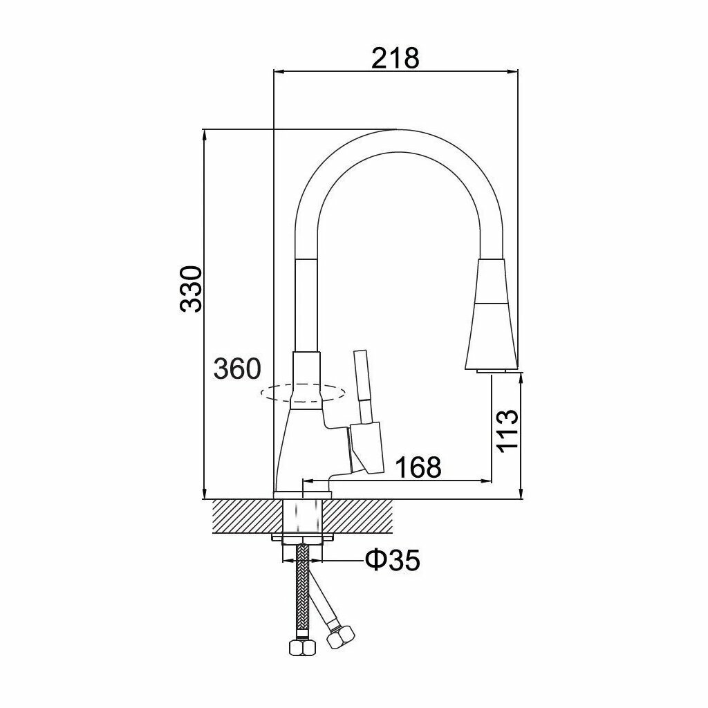 POTATO Смеситель для кухни (Zn)трубч.гибк.излив кер.картр.35мм,гайка,черный,P36284-6