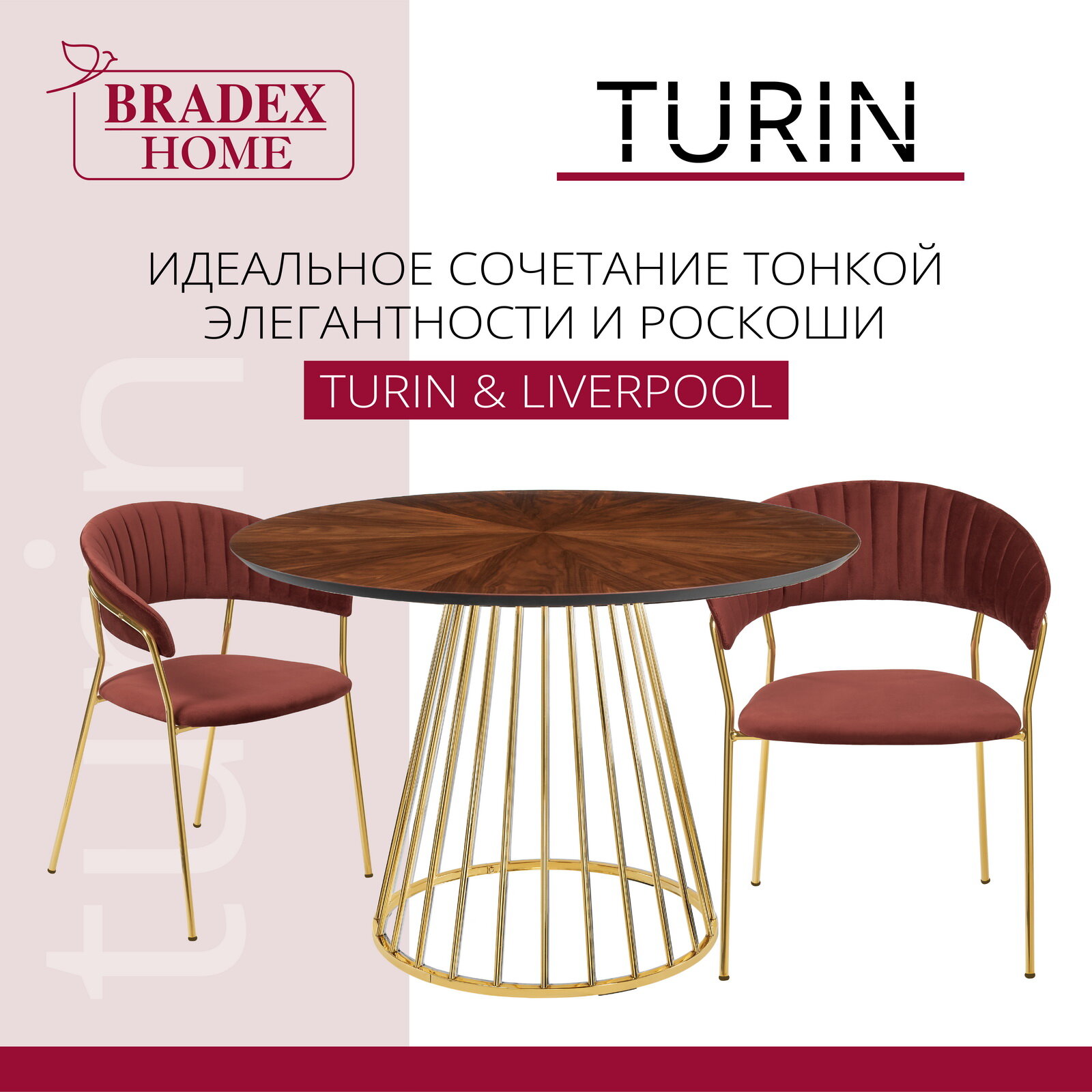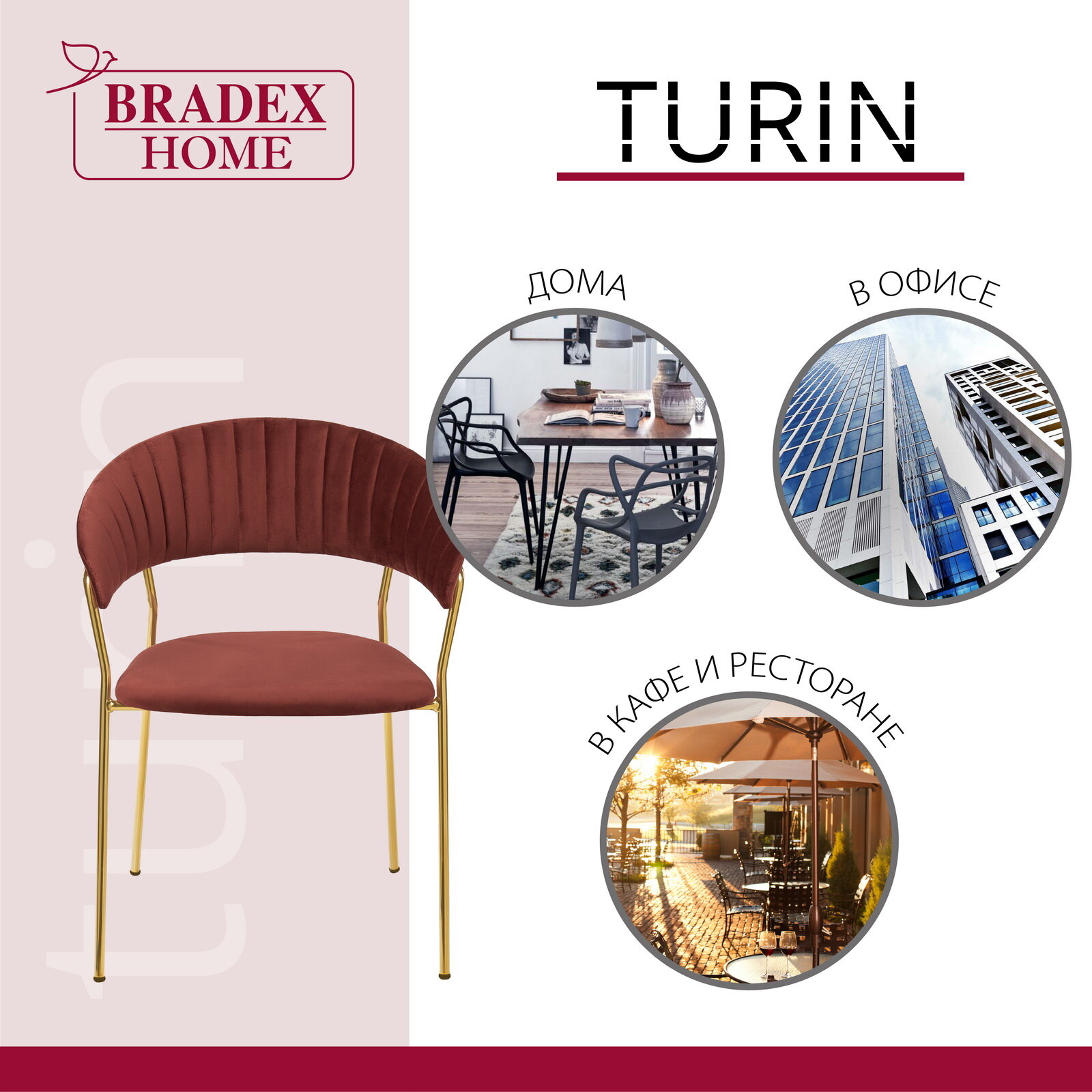 Стул Bradex Turin винный, ножки золото (FR 0715)