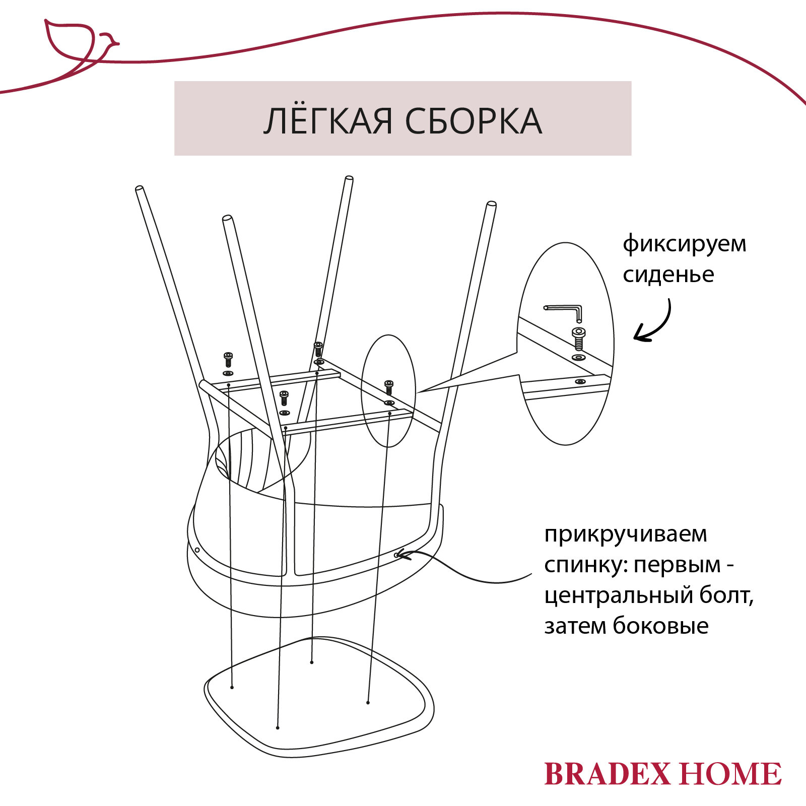 | Комплектация | корпус стула; сиденье; спинка; комплект крепёжных элементов |