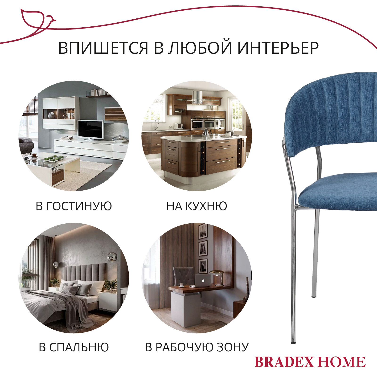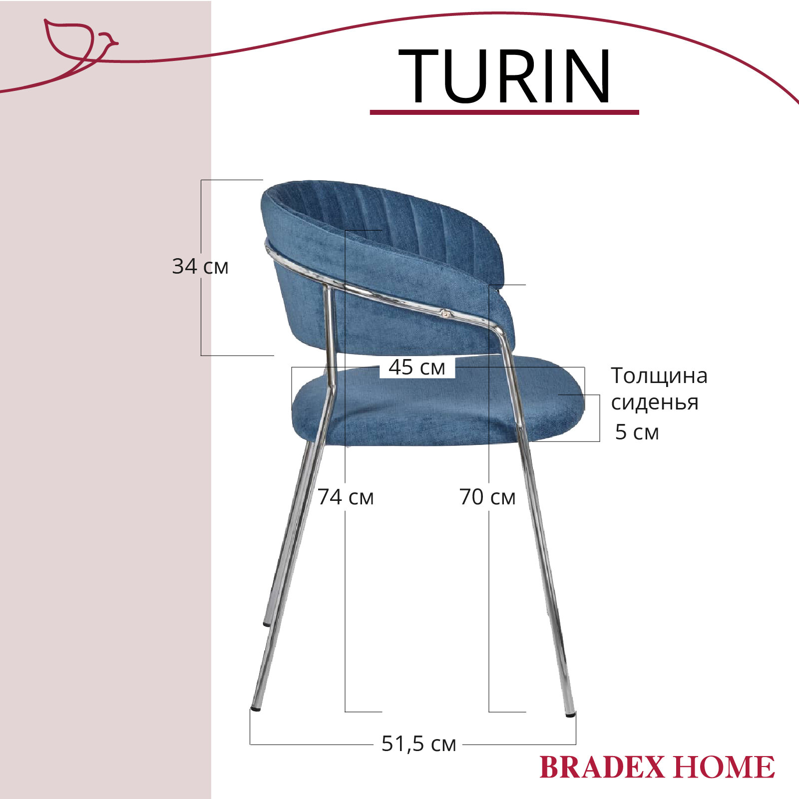 СохранитьСтул для кухни мягкий вельвет со спинкой и подлокотниками Turin синий с хромированными ножками интересное: