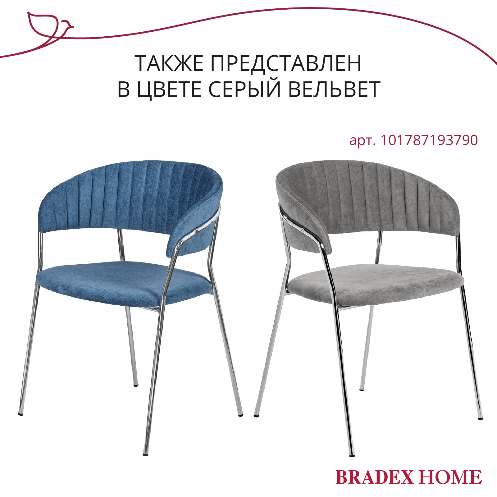 Стул BRADEXHOME Chester Темно-серый (велюр) Размеры: Высота 820мм Глубина 545мм Ширина 500мм