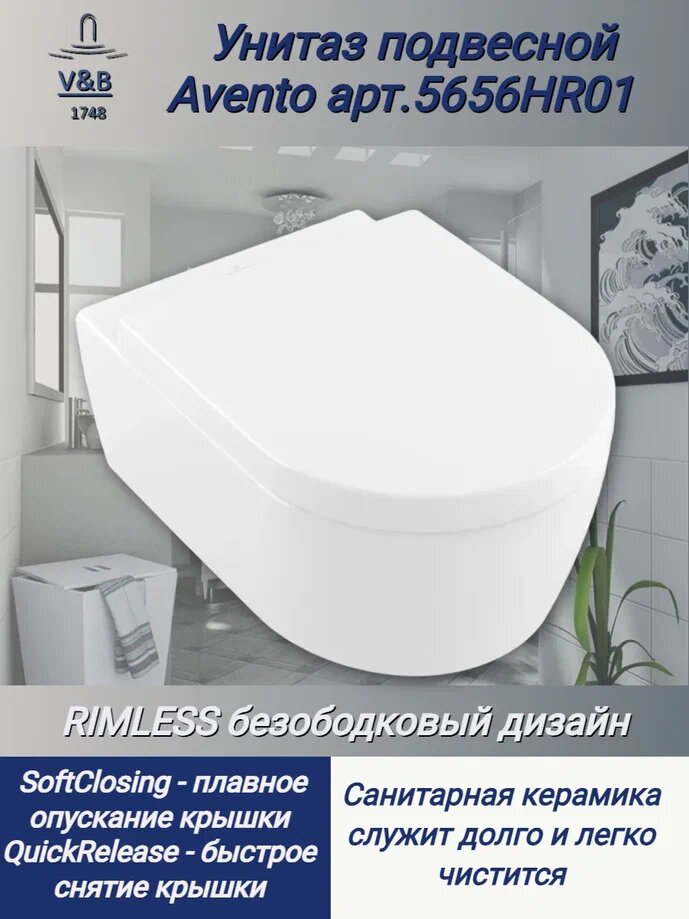 Унитаз Villeroy&Boch Avento Pack 5656HR01 подвесной с сиденьем Микролифт