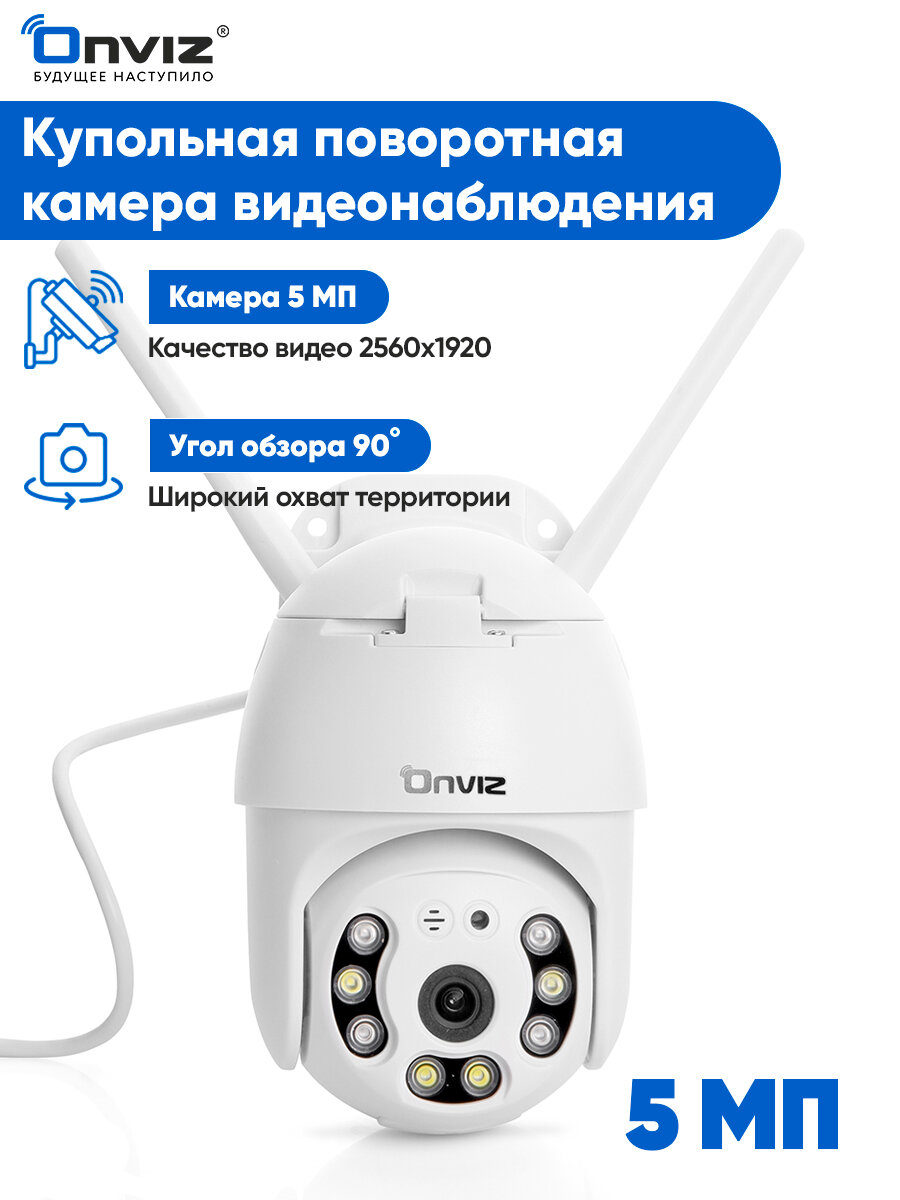 Купольная поворотная IP WiFi 5Мп камера видеонаблюдения Onviz U70, беспроводная уличная камера видеонаблюдения