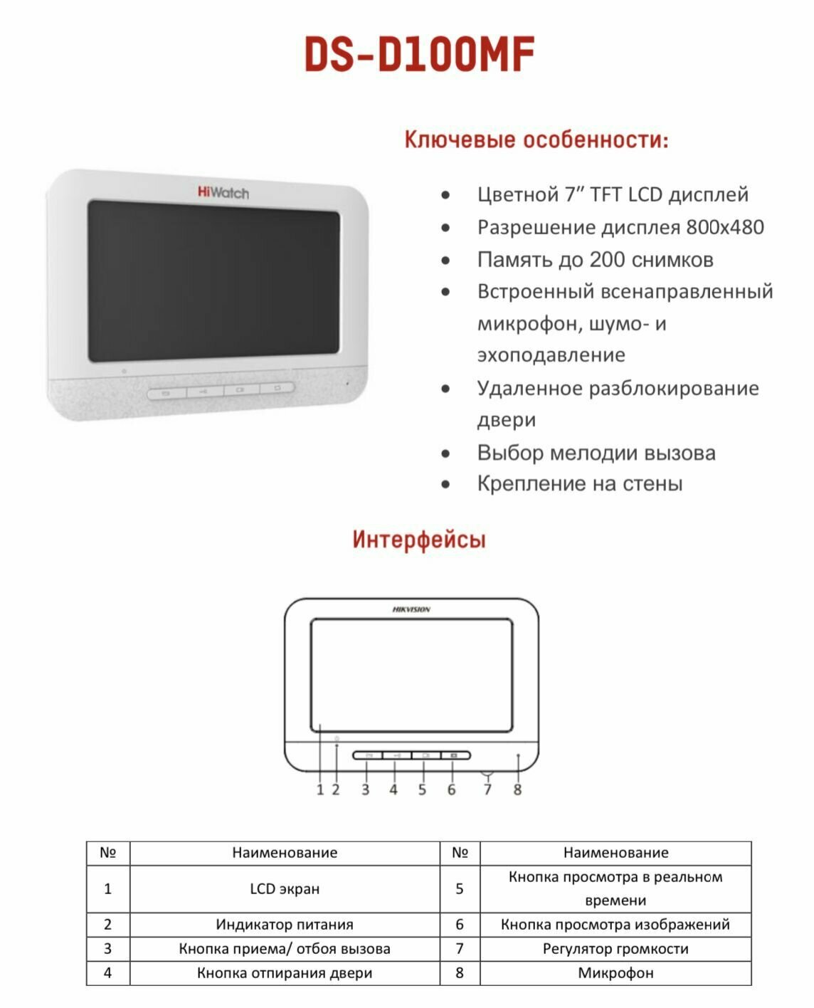 DS-D100MF HiWatch интересное: