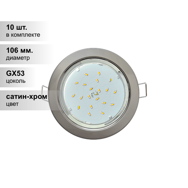 (9 шт.) Светильник встраиваемый Ecola GX53 для ламп с цоколем GX53 макс. 20 Вт, цвет сатин-хром, размер 106x38, врезное отверстие 90 мм, термокольцо в комплекте, FS53H4ECB