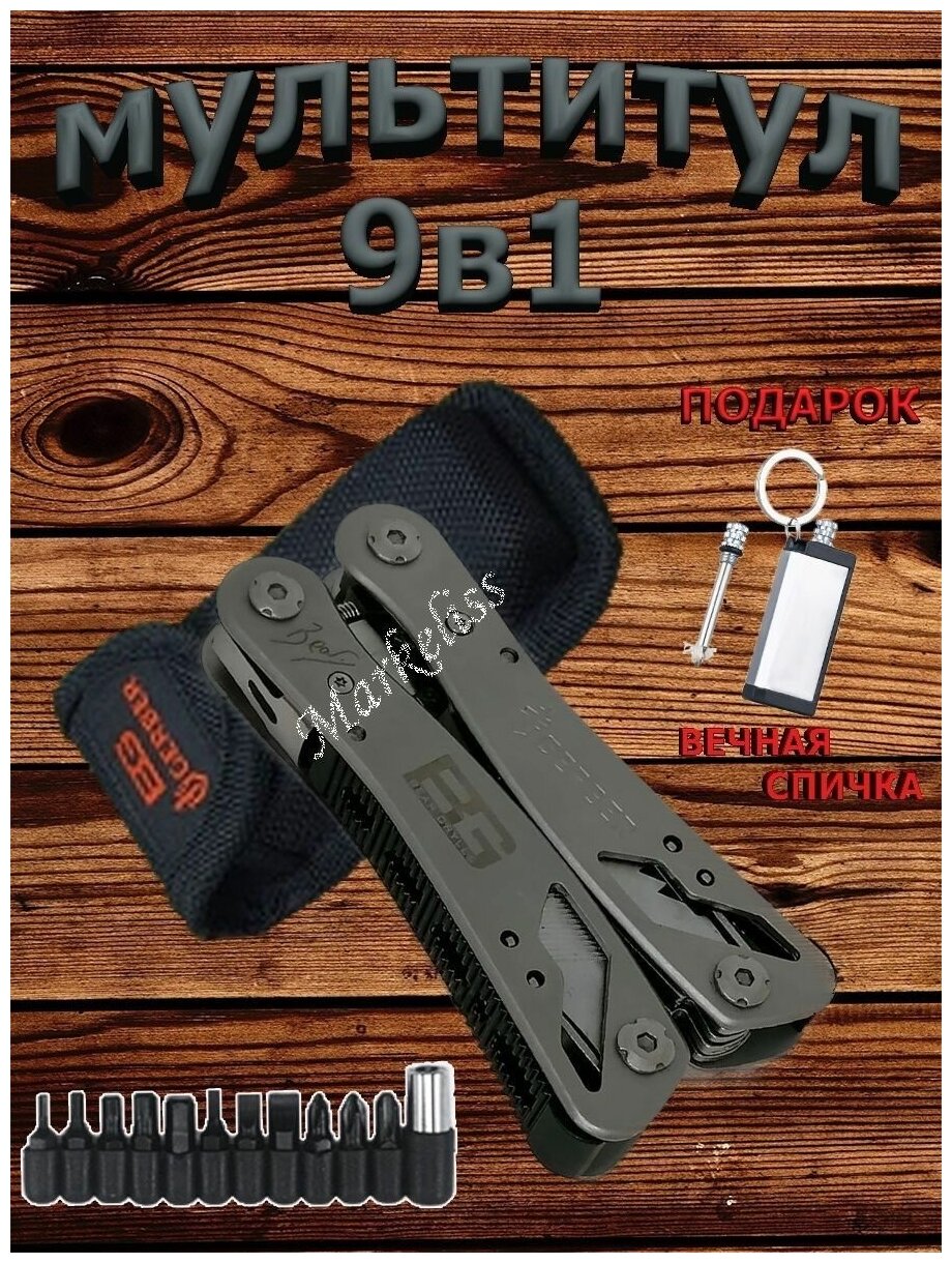 Многофункциональный мультитул инструмент 9в1, компактный туристический для выживания, подарок мужчине набор нож на пояс мини
