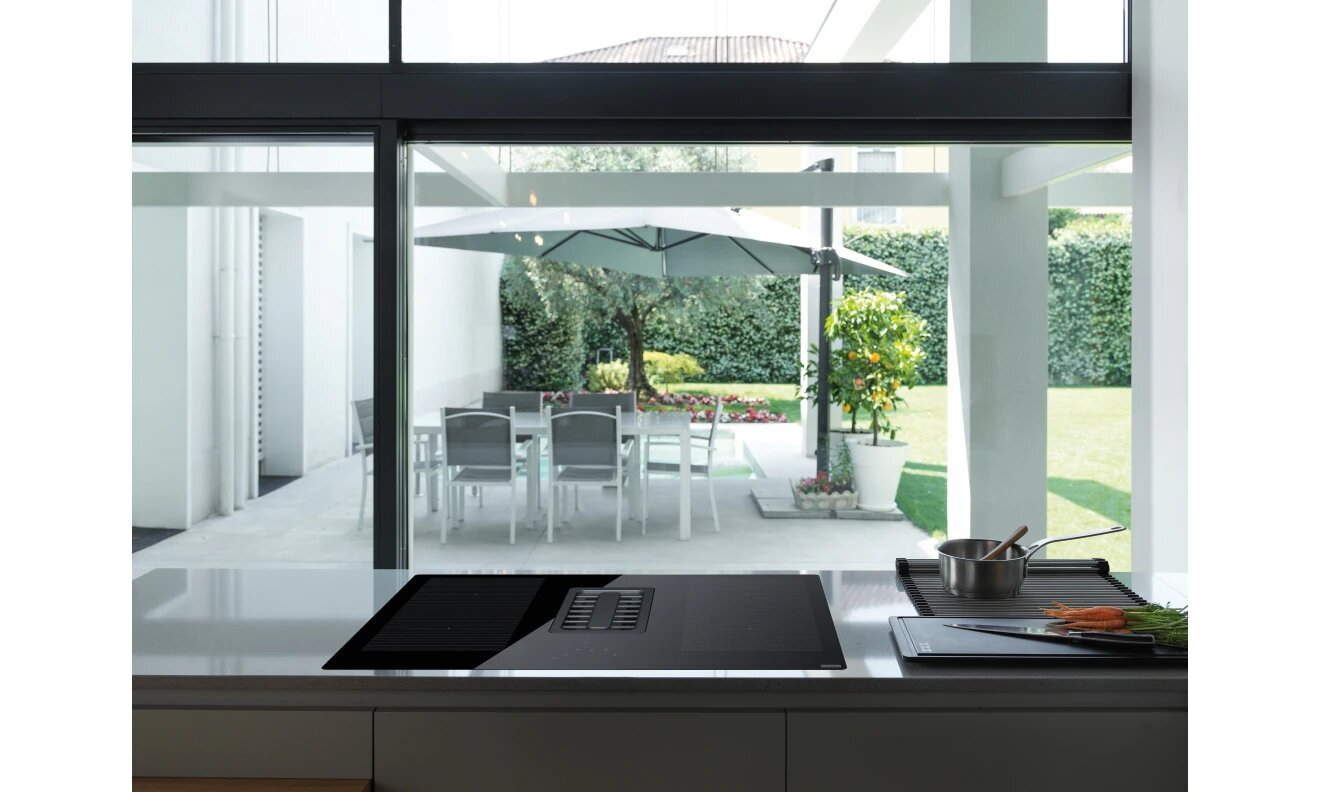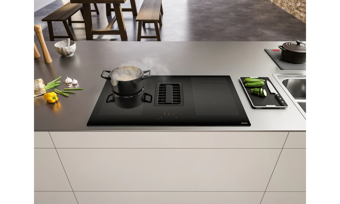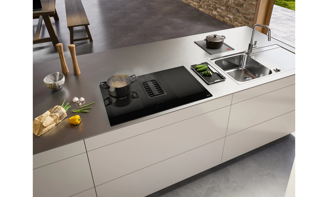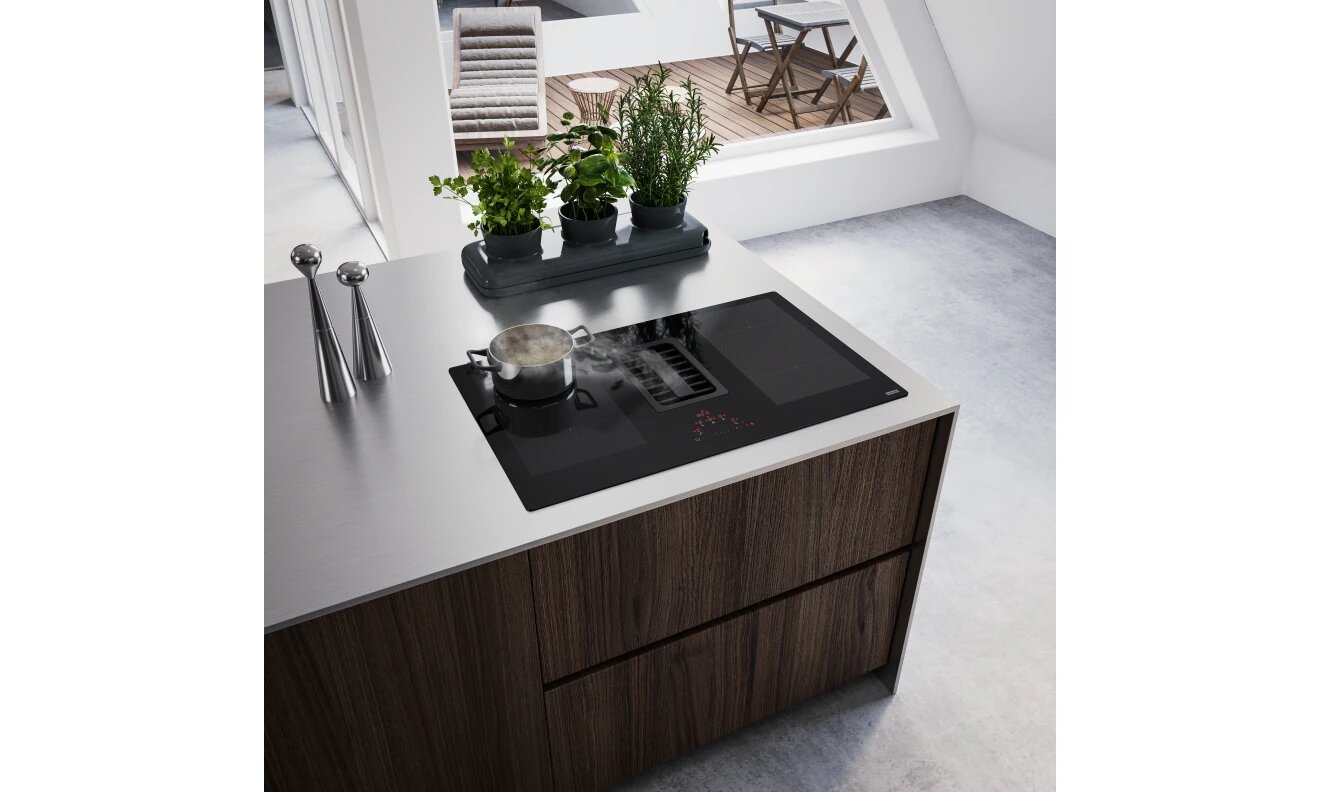 Franke Встраиваемые индукционные панели Franke/ Best, Серия FRANKE MYTHOS, Индукционная варочная поверхность со встроенной вытяжкой FMA 839 HI, 830 x 520 мм, черное стекло