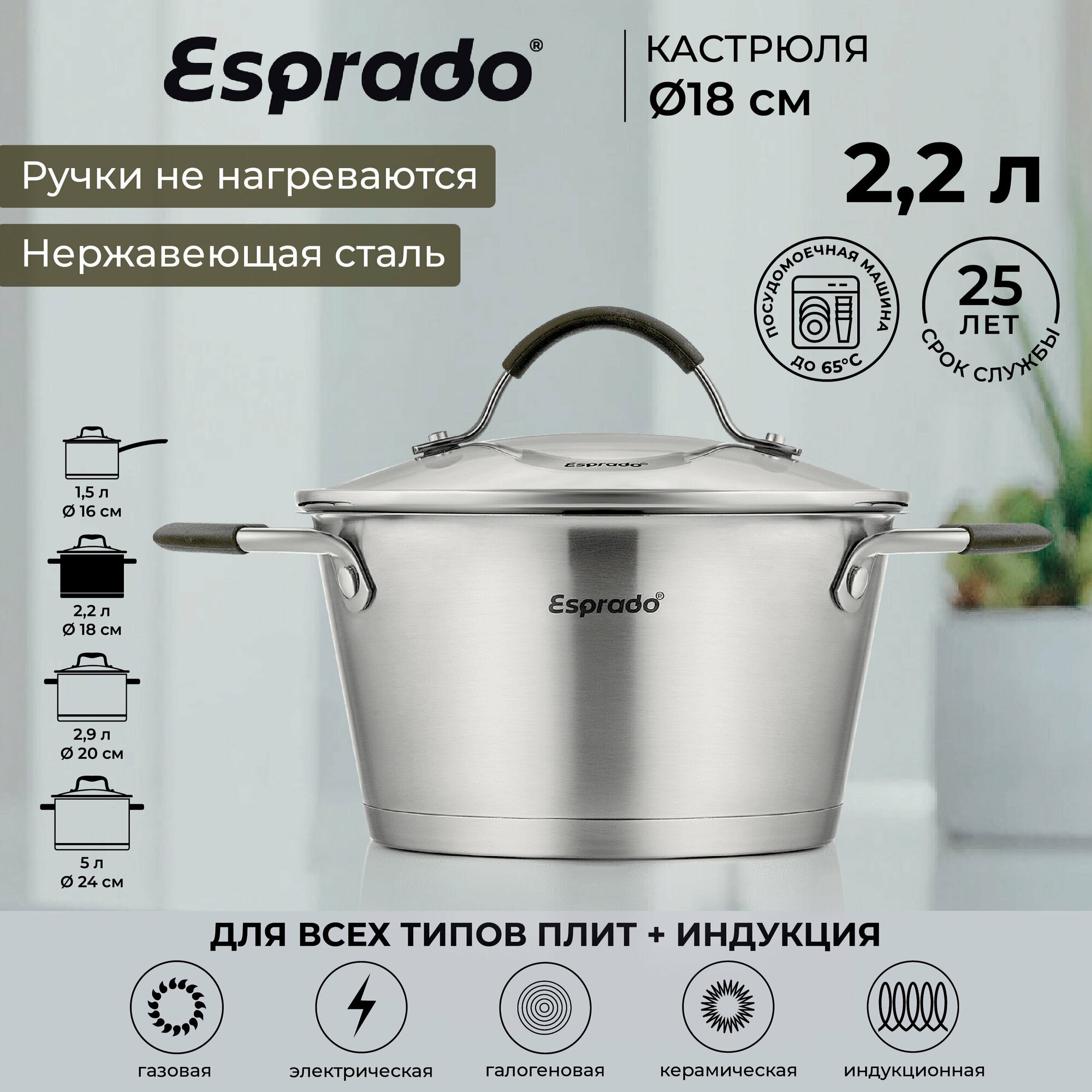 кастрюля ESPRADO Olivera 5л 24см нерж.сталь стекл.крышка индукция